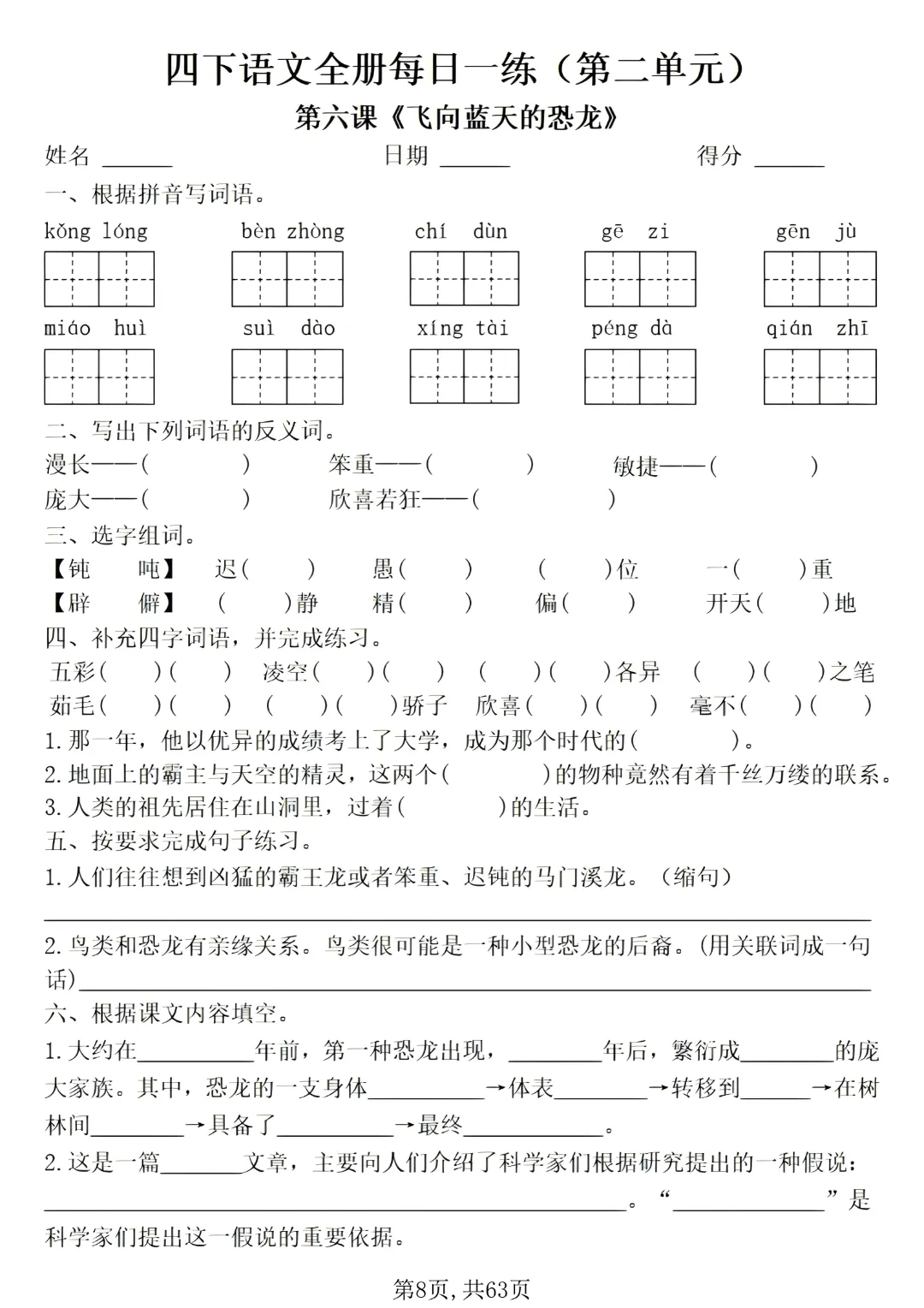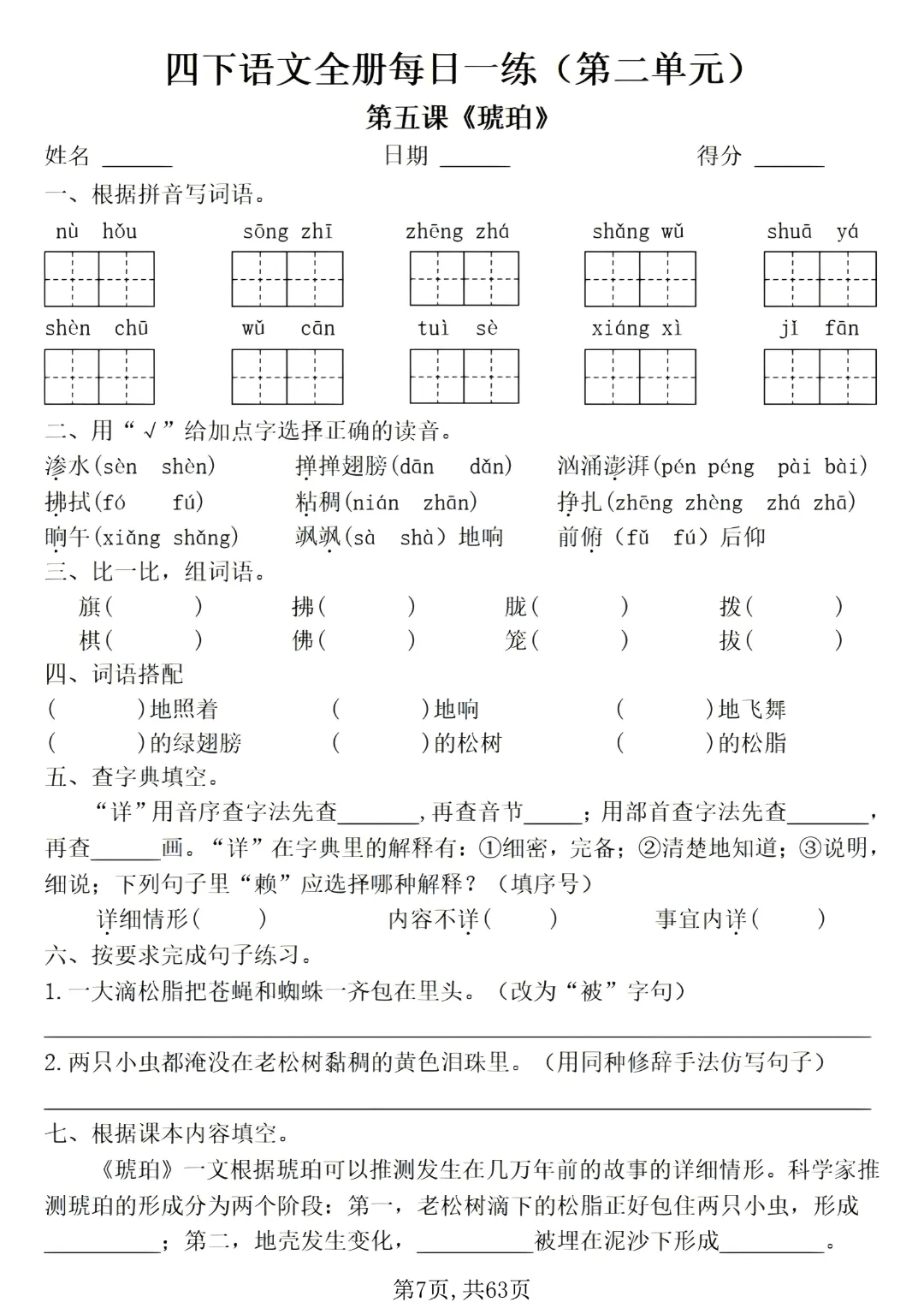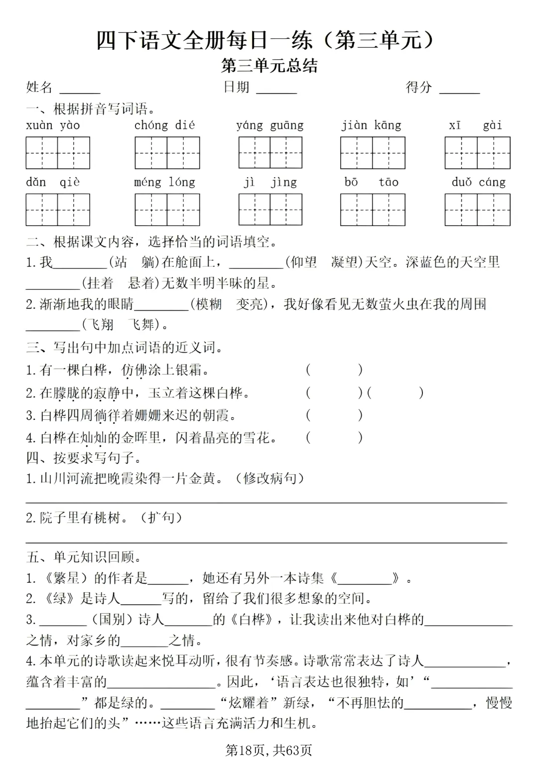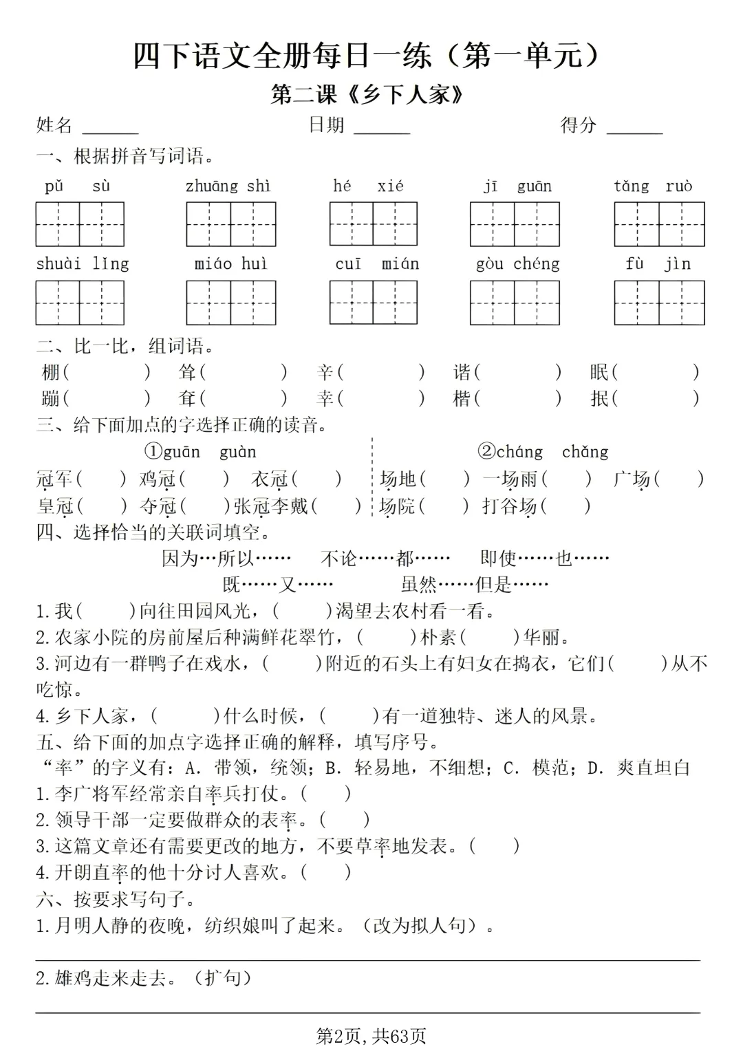 26年春四年级下册语文《一课一练 部编版》练习·学习必备·高清完整可打印
