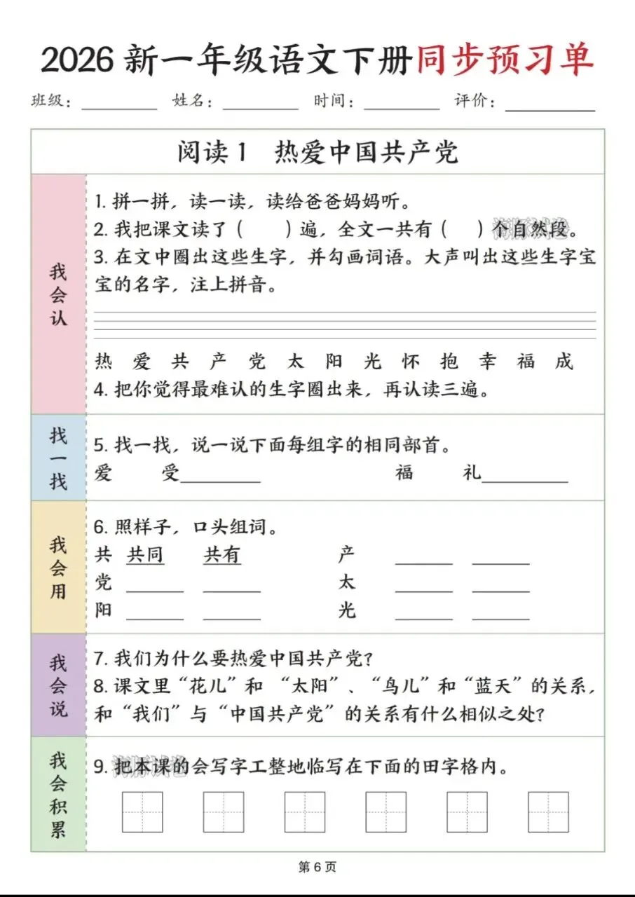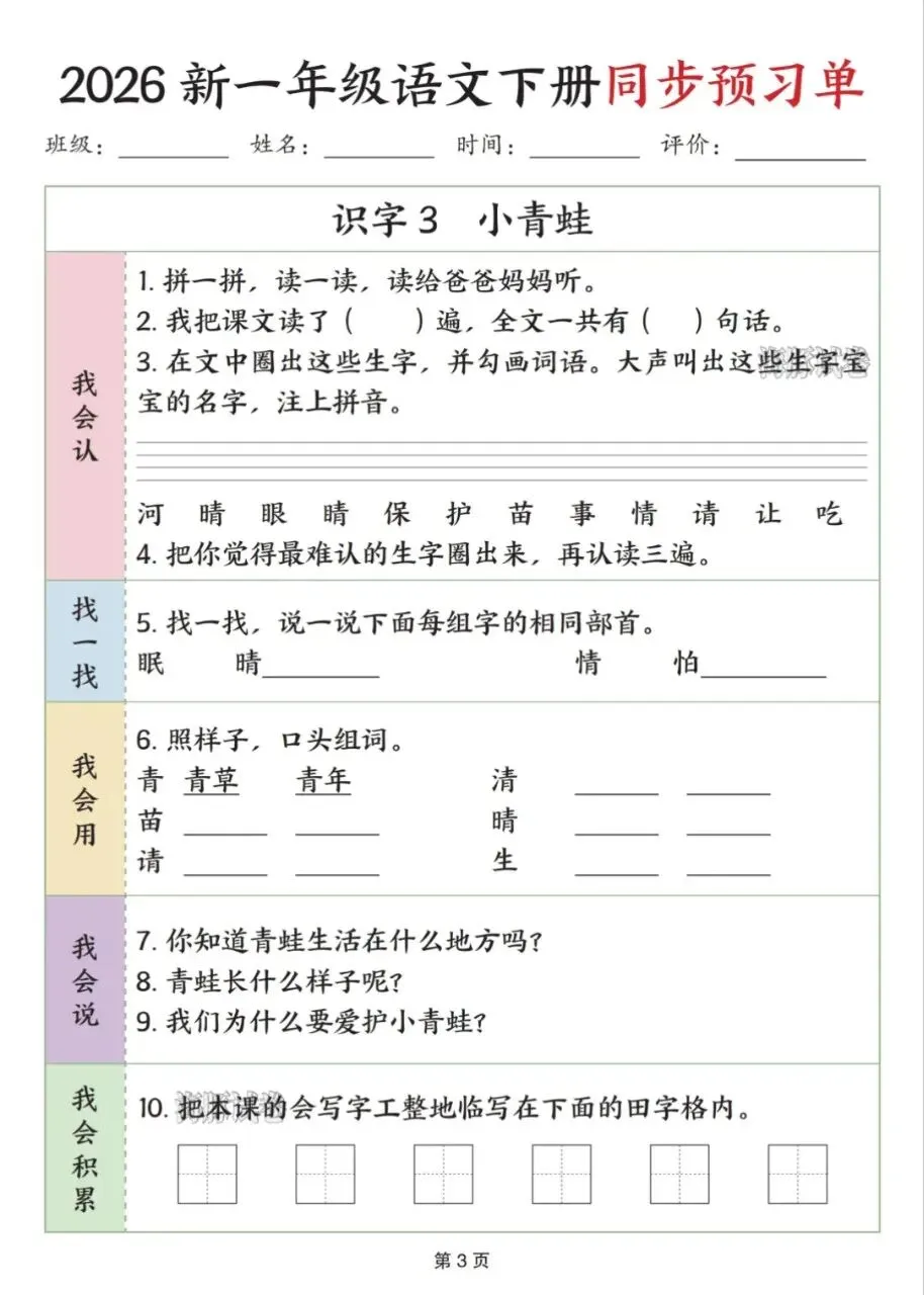孩子提前用这份预习单👇