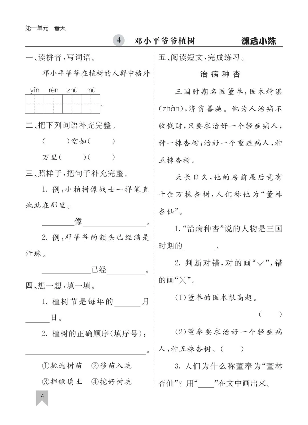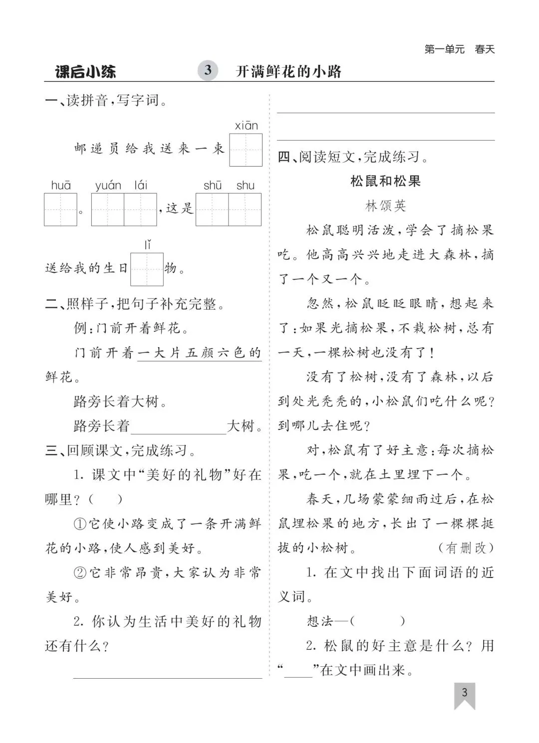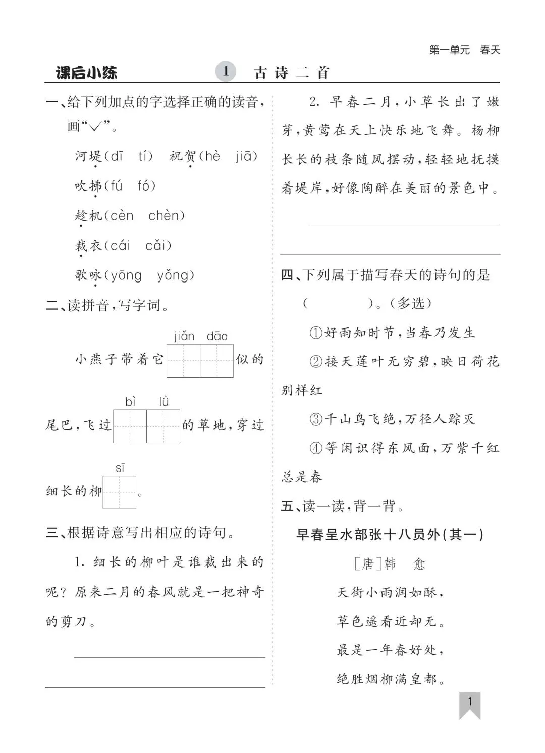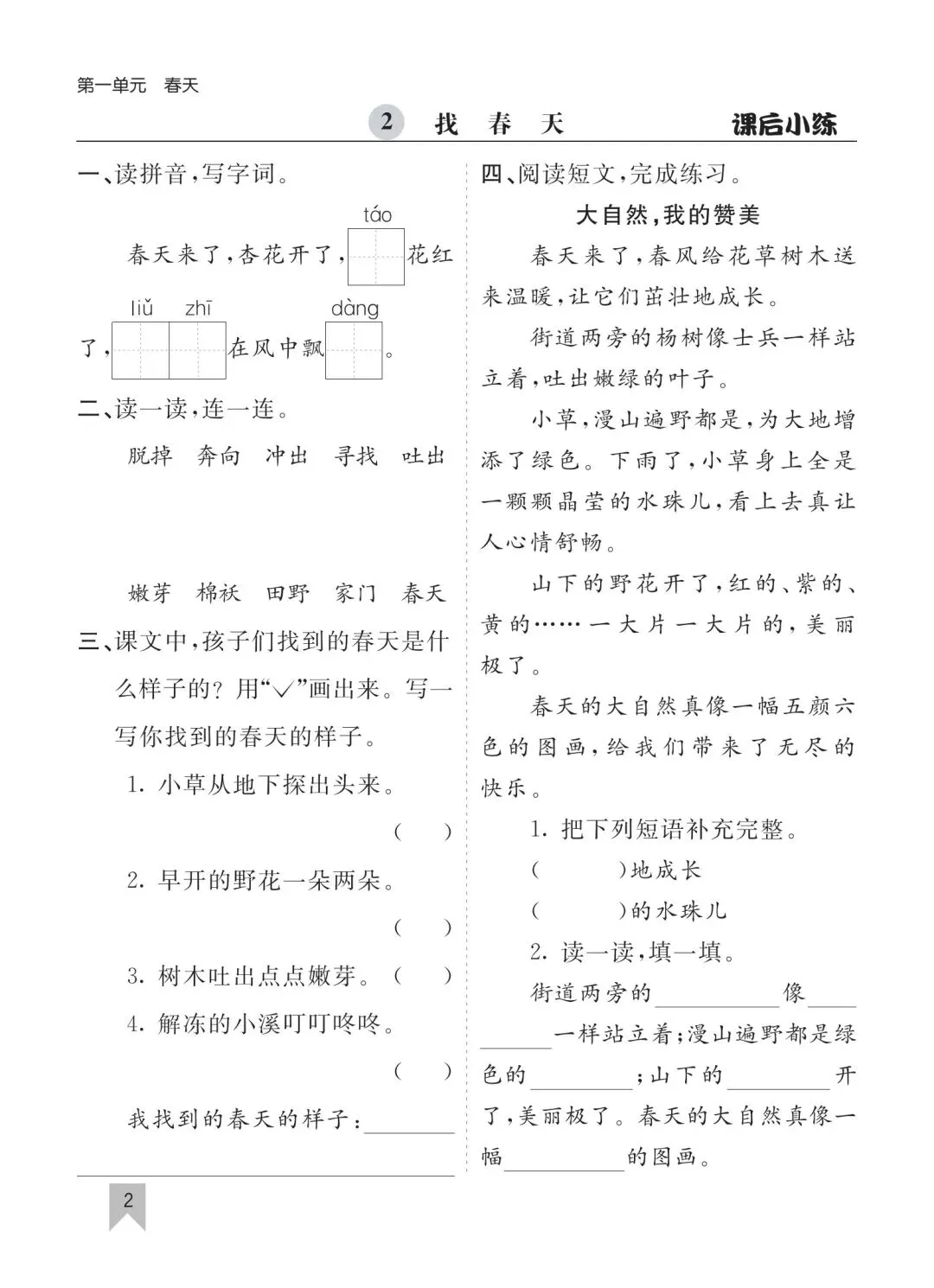 26春二年级下册语文一课一练高清电子版可打印
