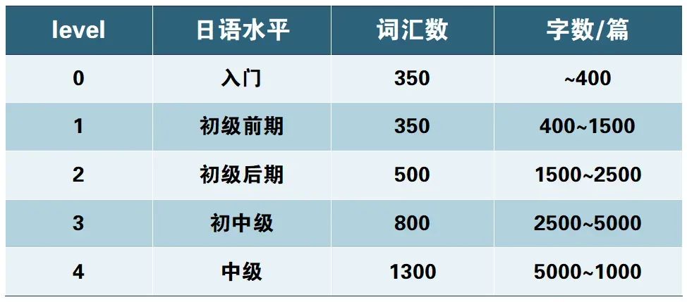 这次帮大家整理的日文原版分级读物从0~4级,每个级别都会针对不同的水平进行科学分级,以下是各个等级对应的日语能力和文章具体内容,大家可以根据自己的实际情况灵活阅读哦!