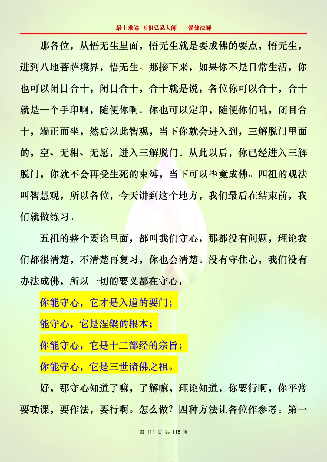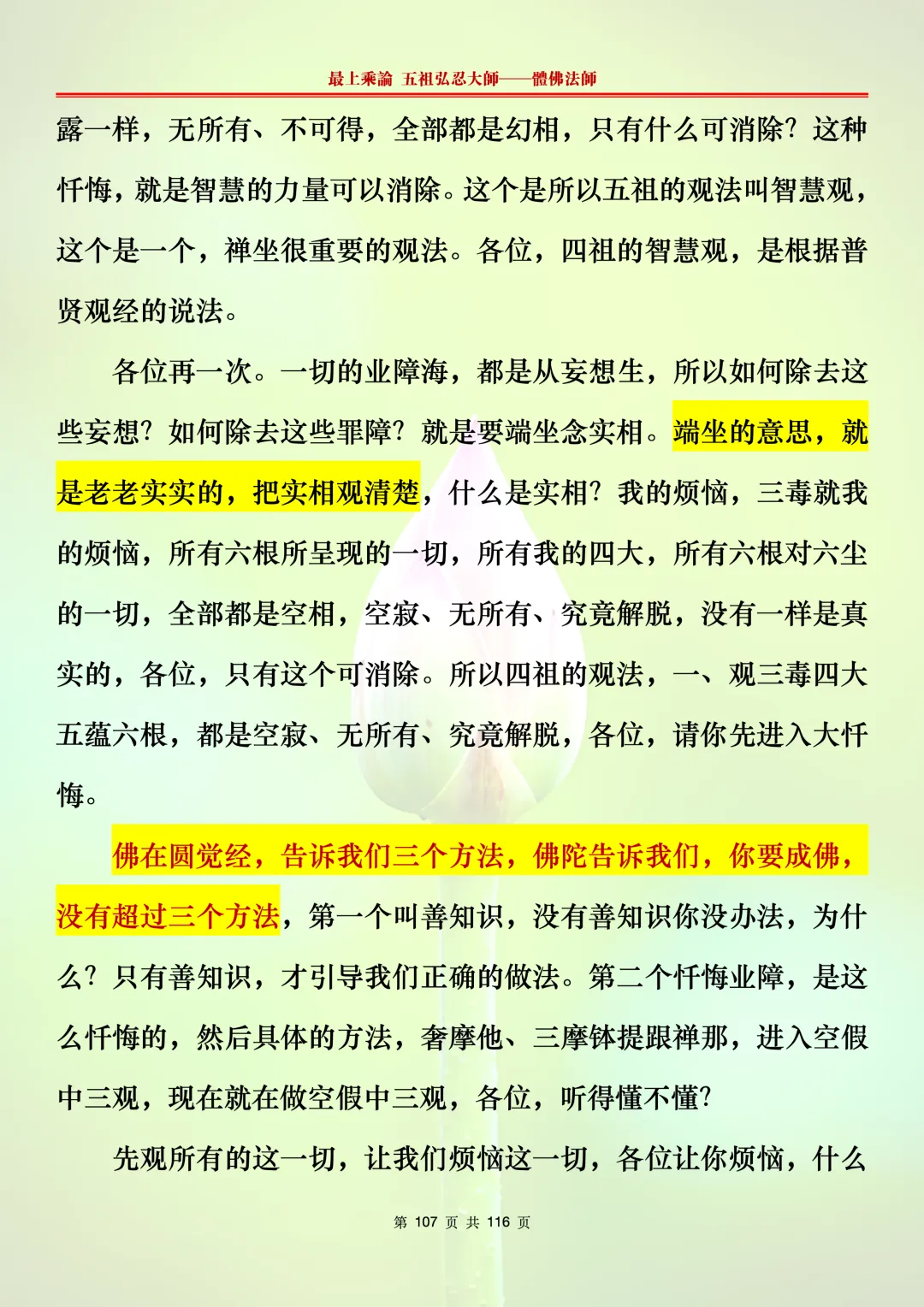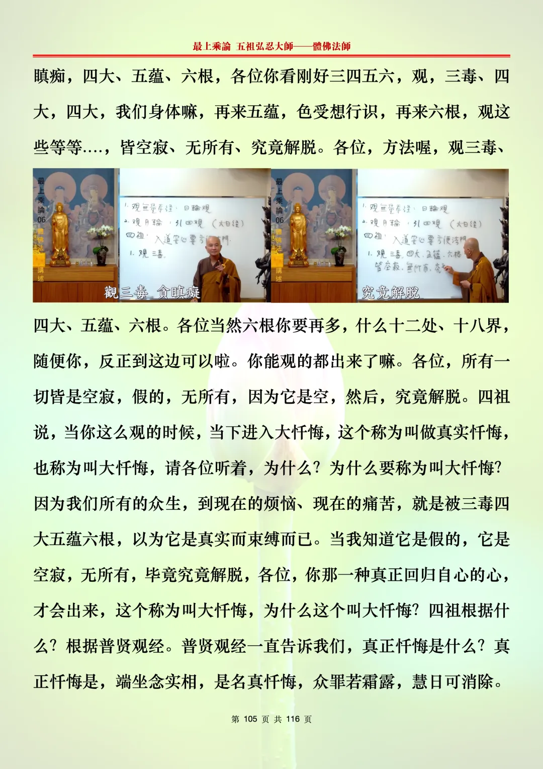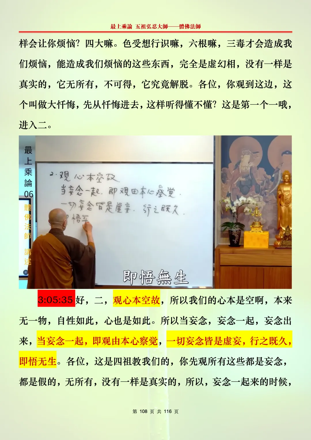 本文字文档,不出自禅院、不出自任何团队、不出自机器软件所提取的文字。本节课是个人依据法师讲解的视频,再依法师讲解的法义及语气,再根据个人的体悟,一句一句,对照视频而分成的段落,以及重点的标注。所标注的重点不代表本节课就是这样子,个人体悟不同,当然重点也就不同。文字文档,是方便没有时间观看视频的情况下使用,非作他用,大家时间充裕的情况下,重点还是应以法师讲解的视频为主。有时候一节课分成几段分享,是因为讲义时间比较长,而不得不分成两段或者三段分享,不代表什么。