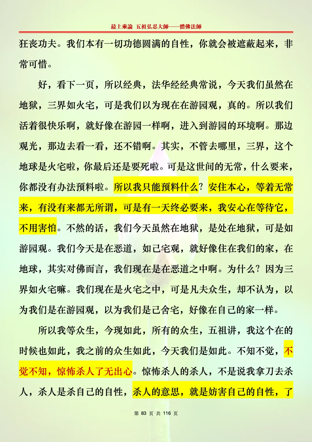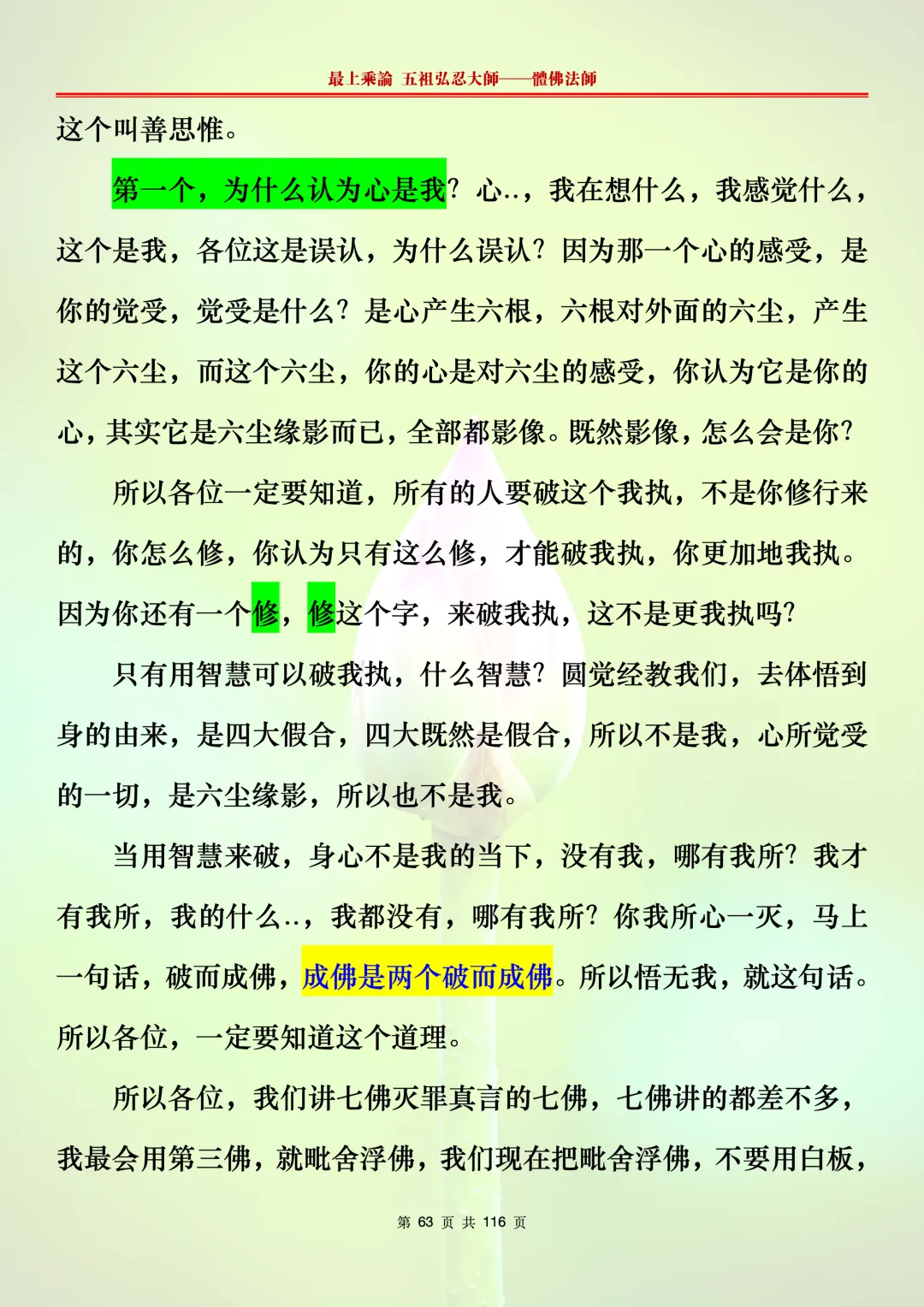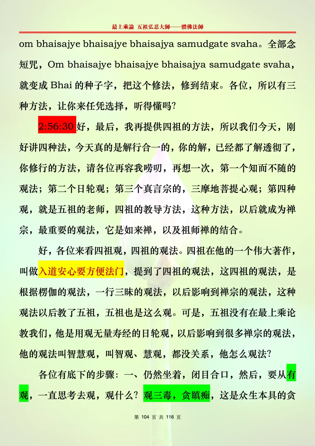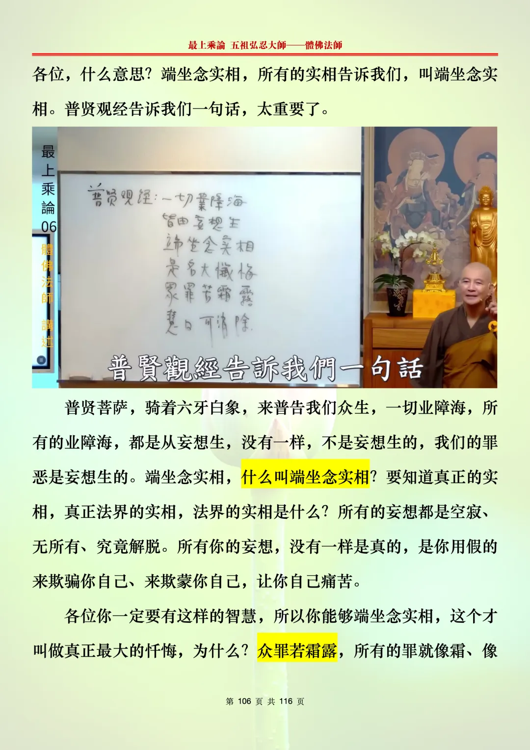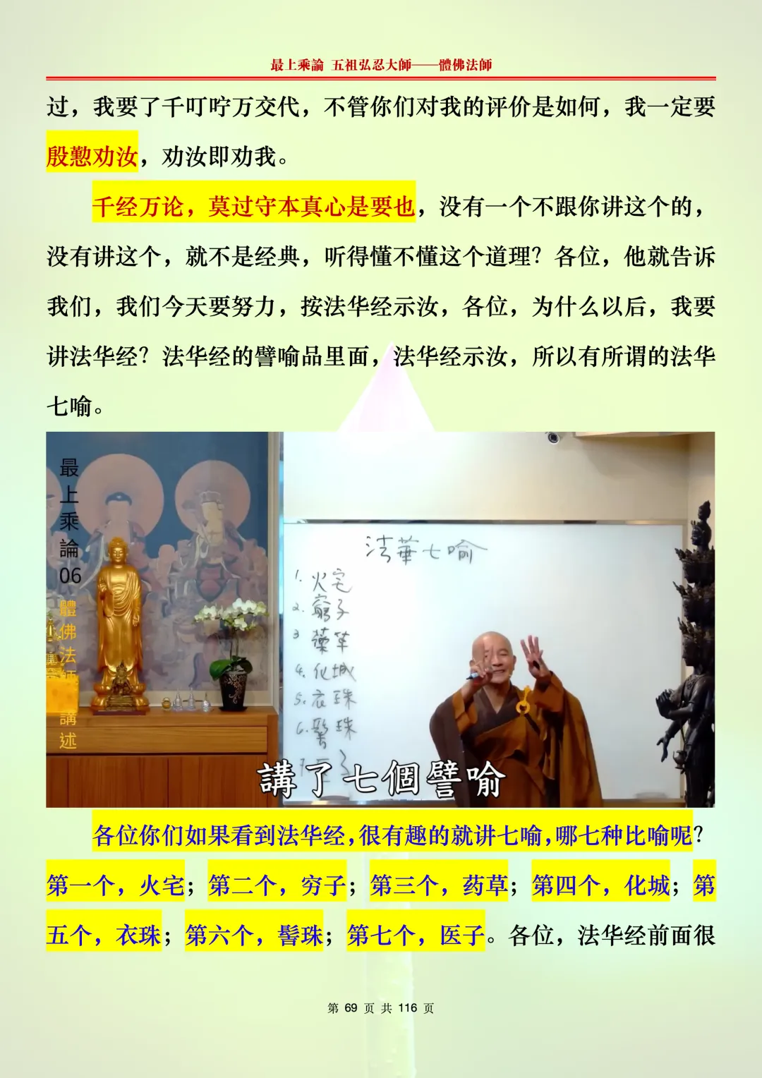 本文字文档,不出自禅院、不出自任何团队、不出自机器软件所提取的文字。本节课是个人依据法师讲解的视频,再依法师讲解的法义及语气,再根据个人的体悟,一句一句,对照视频而分成的段落,以及重点的标注。所标注的重点不代表本节课就是这样子,个人体悟不同,当然重点也就不同。文字文档,是方便没有时间观看视频的情况下使用,非作他用,大家时间充裕的情况下,重点还是应以法师讲解的视频为主。有时候一节课分成几段分享,是因为讲义时间比较长,而不得不分成两段或者三段分享,不代表什么。