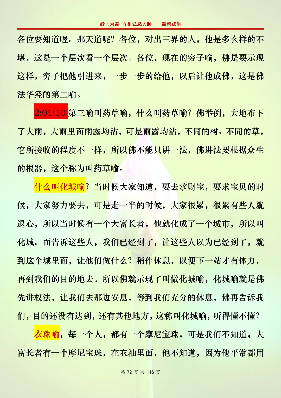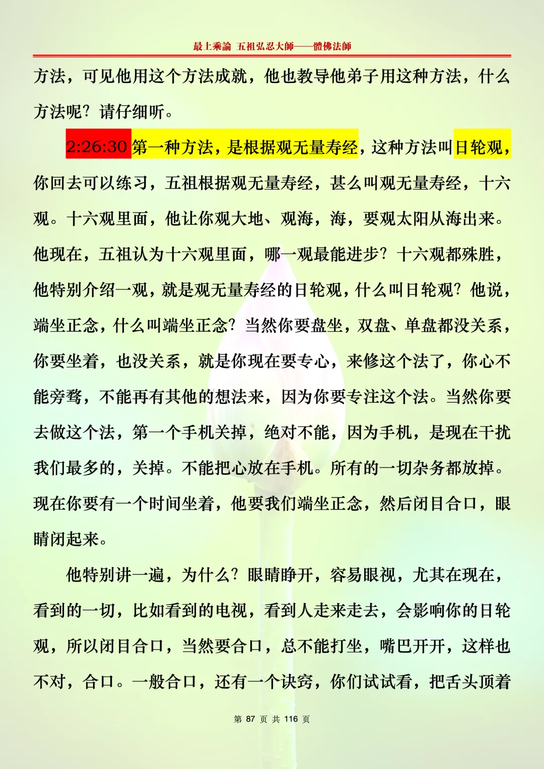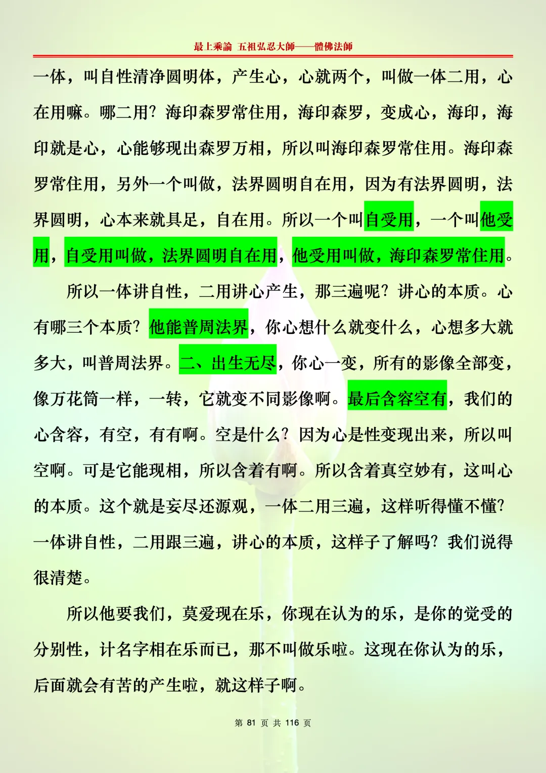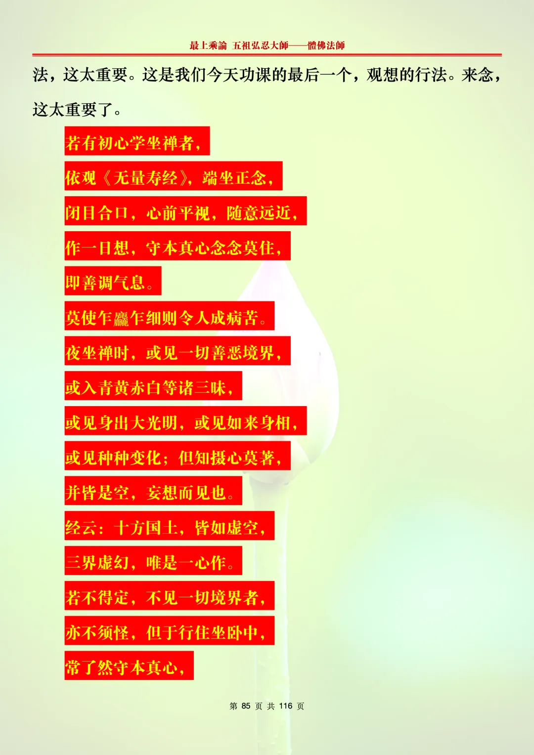 本文字文档,不出自禅院、不出自任何团队、不出自机器软件所提取的文字。本节课是个人依据法师讲解的视频,再依法师讲解的法义及语气,再根据个人的体悟,一句一句,对照视频而分成的段落,以及重点的标注。所标注的重点不代表本节课就是这样子,个人体悟不同,当然重点也就不同。文字文档,是方便没有时间观看视频的情况下使用,非作他用,大家时间充裕的情况下,重点还是应以法师讲解的视频为主。有时候一节课分成几段分享,是因为讲义时间比较长,而不得不分成两段或者三段分享,不代表什么。