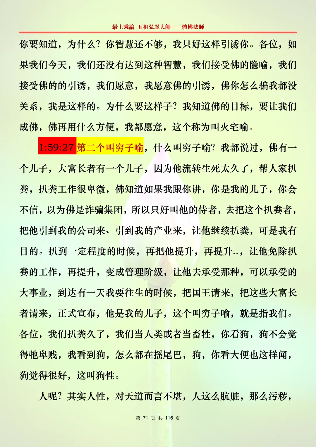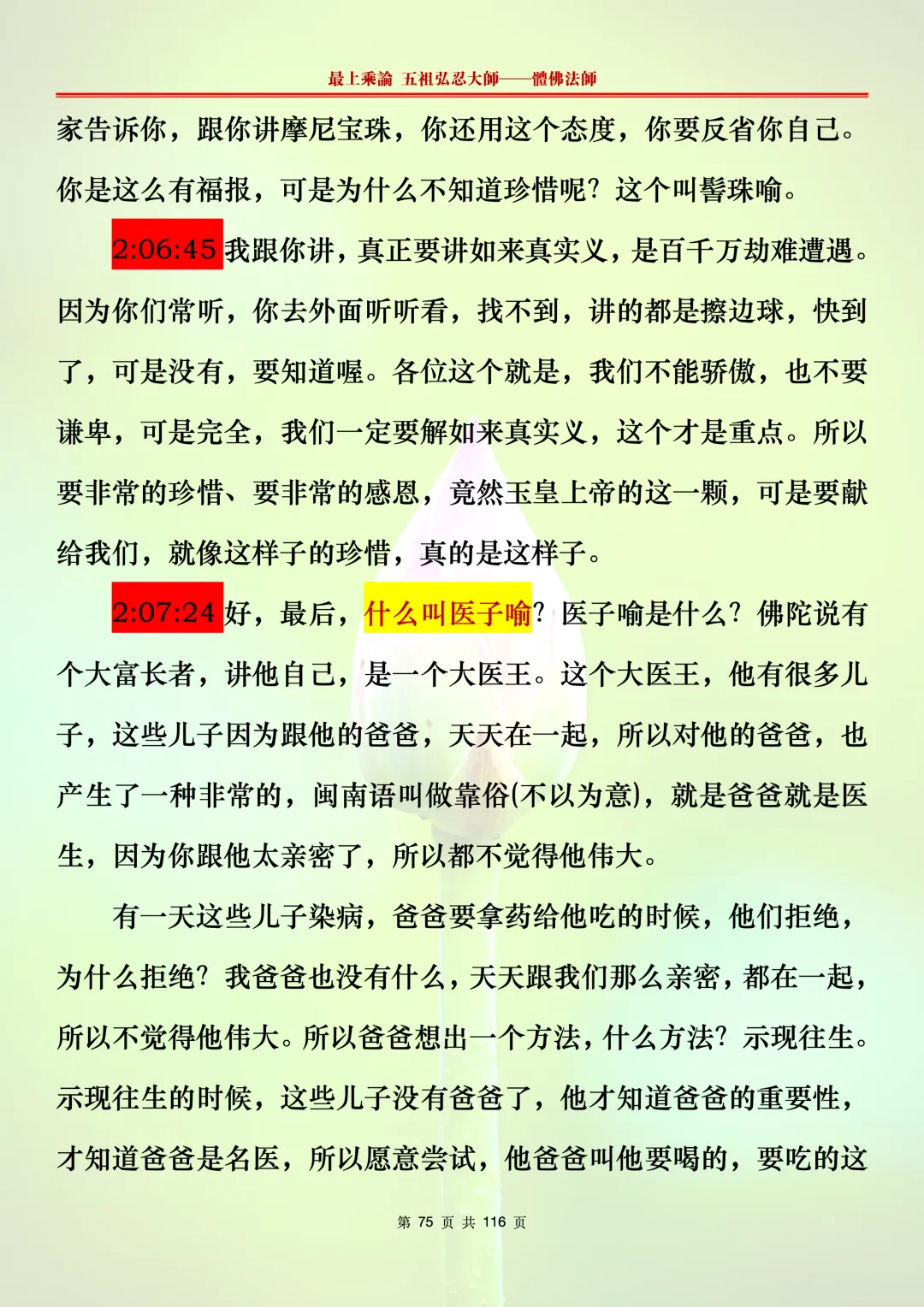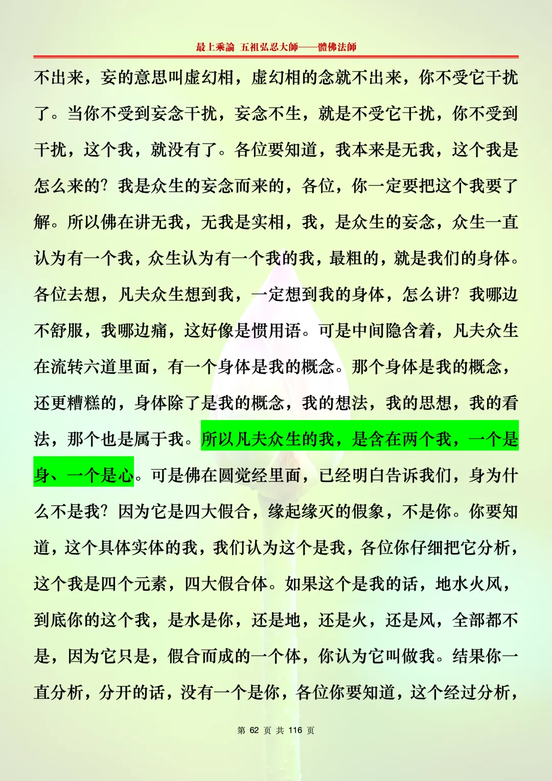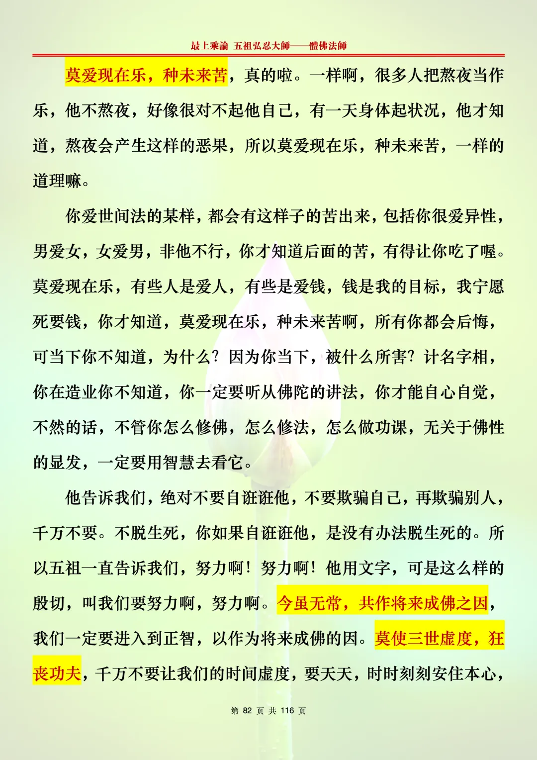 本文字文档,不出自禅院、不出自任何团队、不出自机器软件所提取的文字。本节课是个人依据法师讲解的视频,再依法师讲解的法义及语气,再根据个人的体悟,一句一句,对照视频而分成的段落,以及重点的标注。所标注的重点不代表本节课就是这样子,个人体悟不同,当然重点也就不同。文字文档,是方便没有时间观看视频的情况下使用,非作他用,大家时间充裕的情况下,重点还是应以法师讲解的视频为主。有时候一节课分成几段分享,是因为讲义时间比较长,而不得不分成两段或者三段分享,不代表什么。