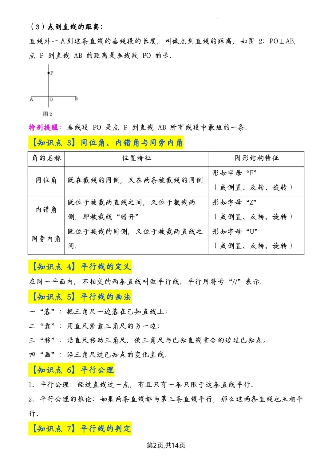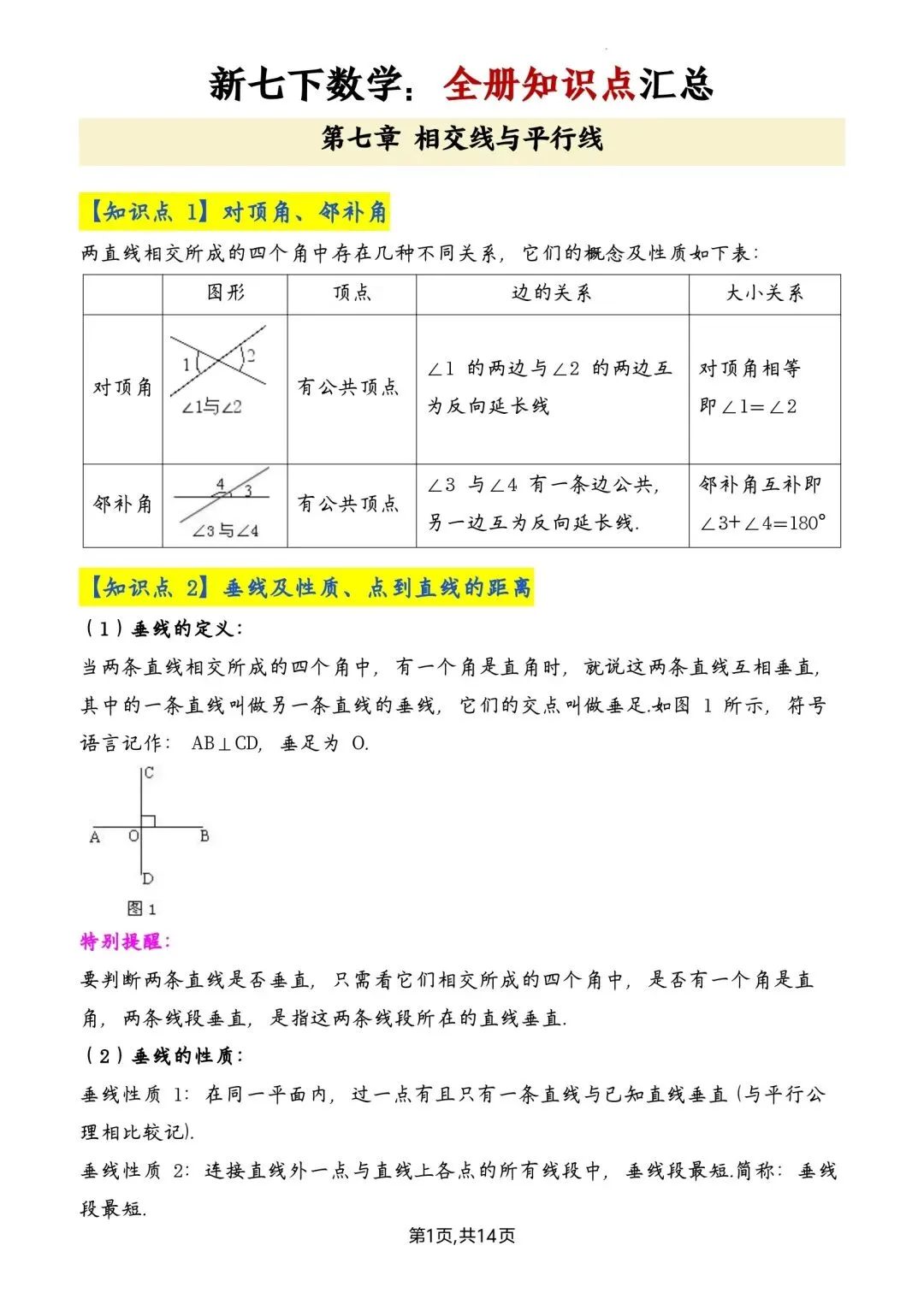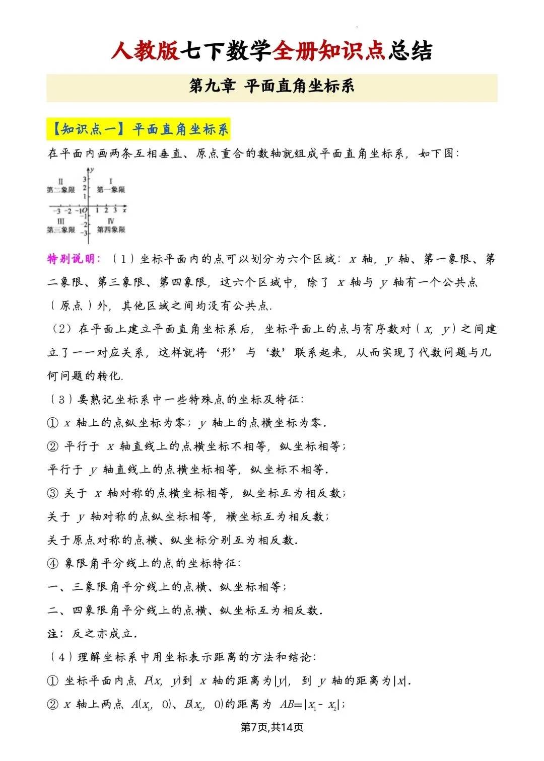 七年级下册数学全册知识点汇总高清电子版可打印