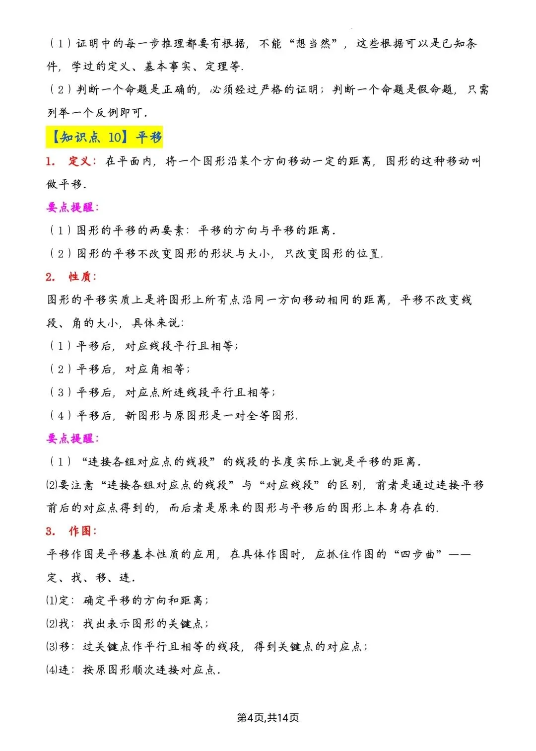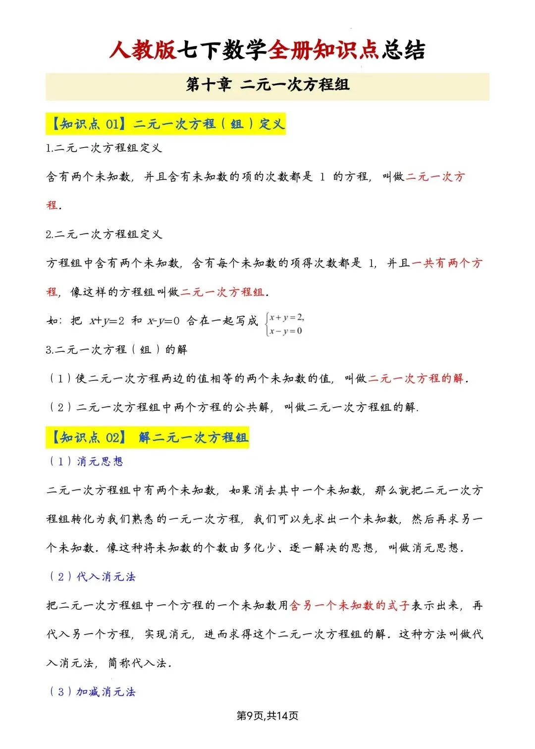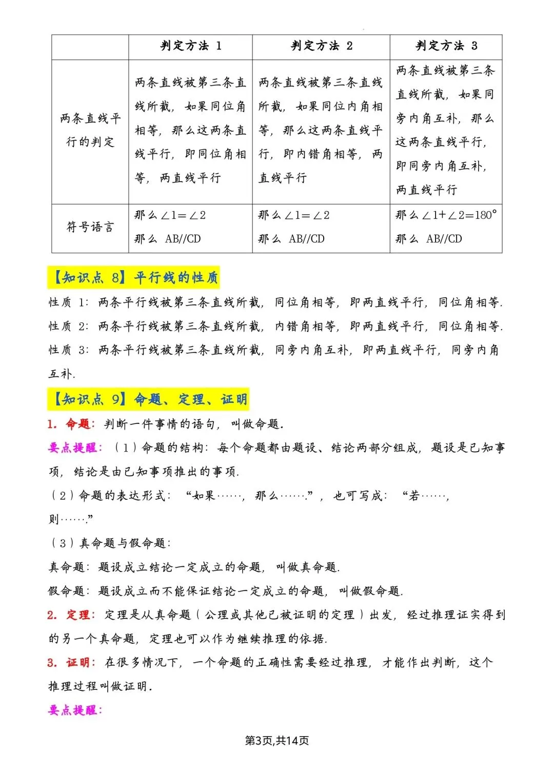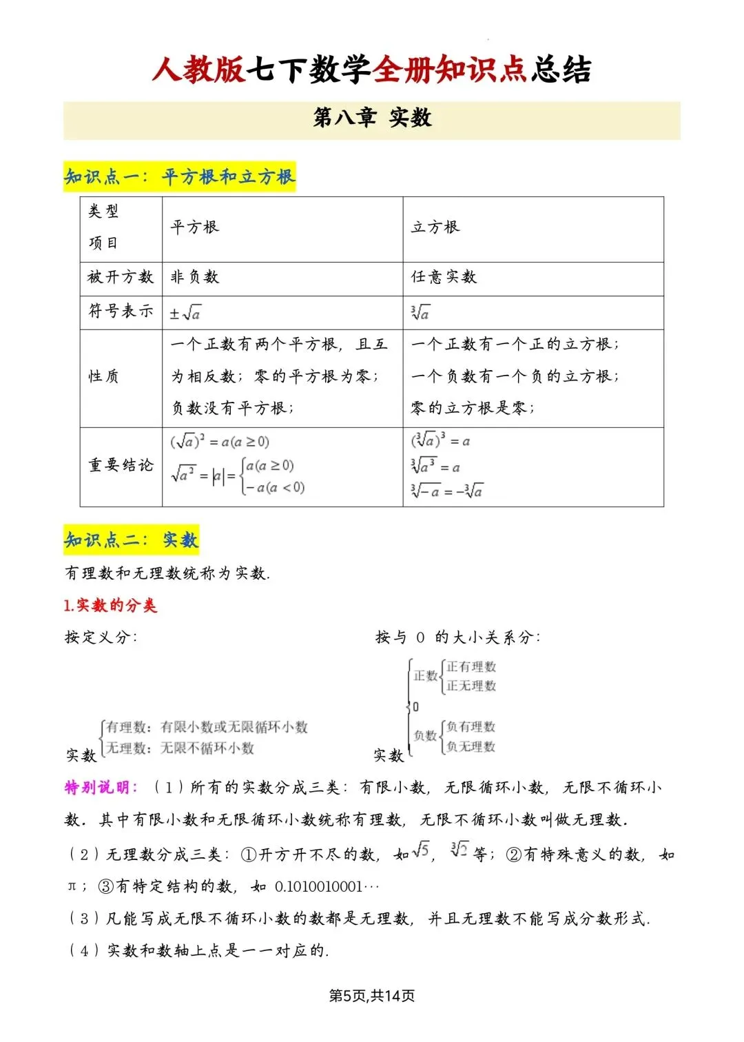 七年级下册数学全册知识点汇总高清电子版可打印