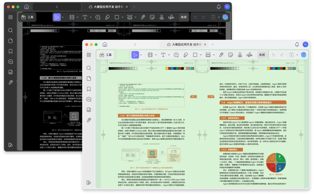 界面支持更多皮肤切换,护眼模式和自由背景模式让你看 PDF 看得更舒服。