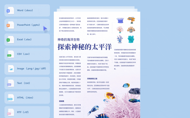 利用转换功能,PDF 可以秒变图片、PPT、长图,演示、分享随心所欲。