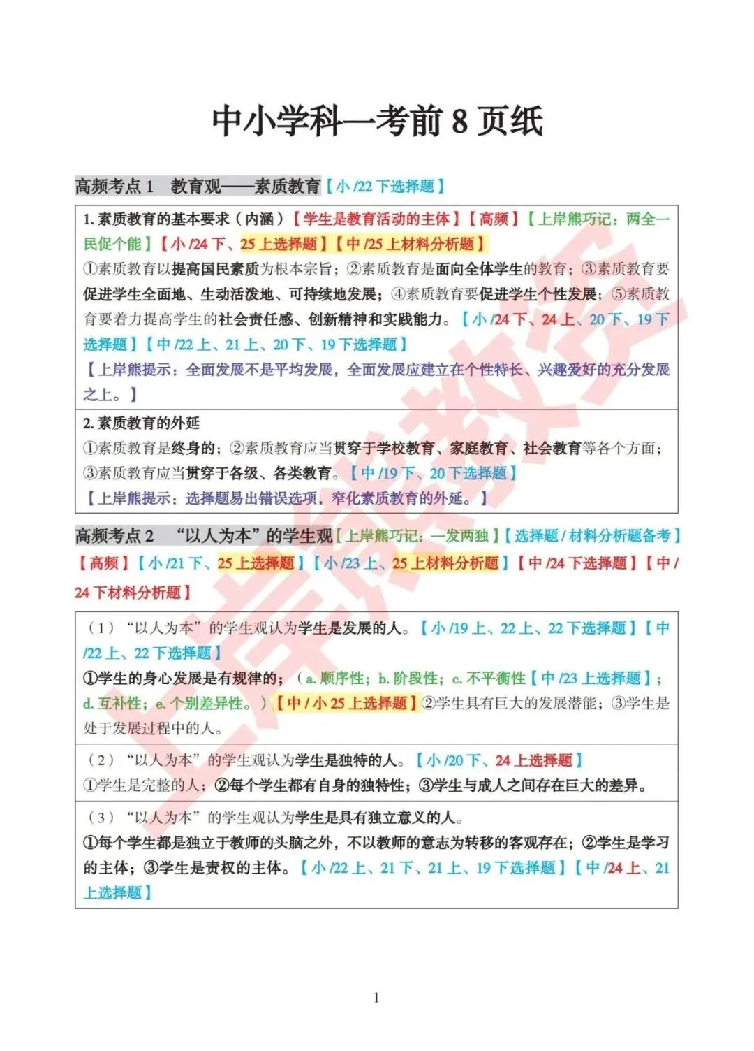 2026上半年《教资笔试最新考前8页纸》电子版,可免费下载考试必备!
