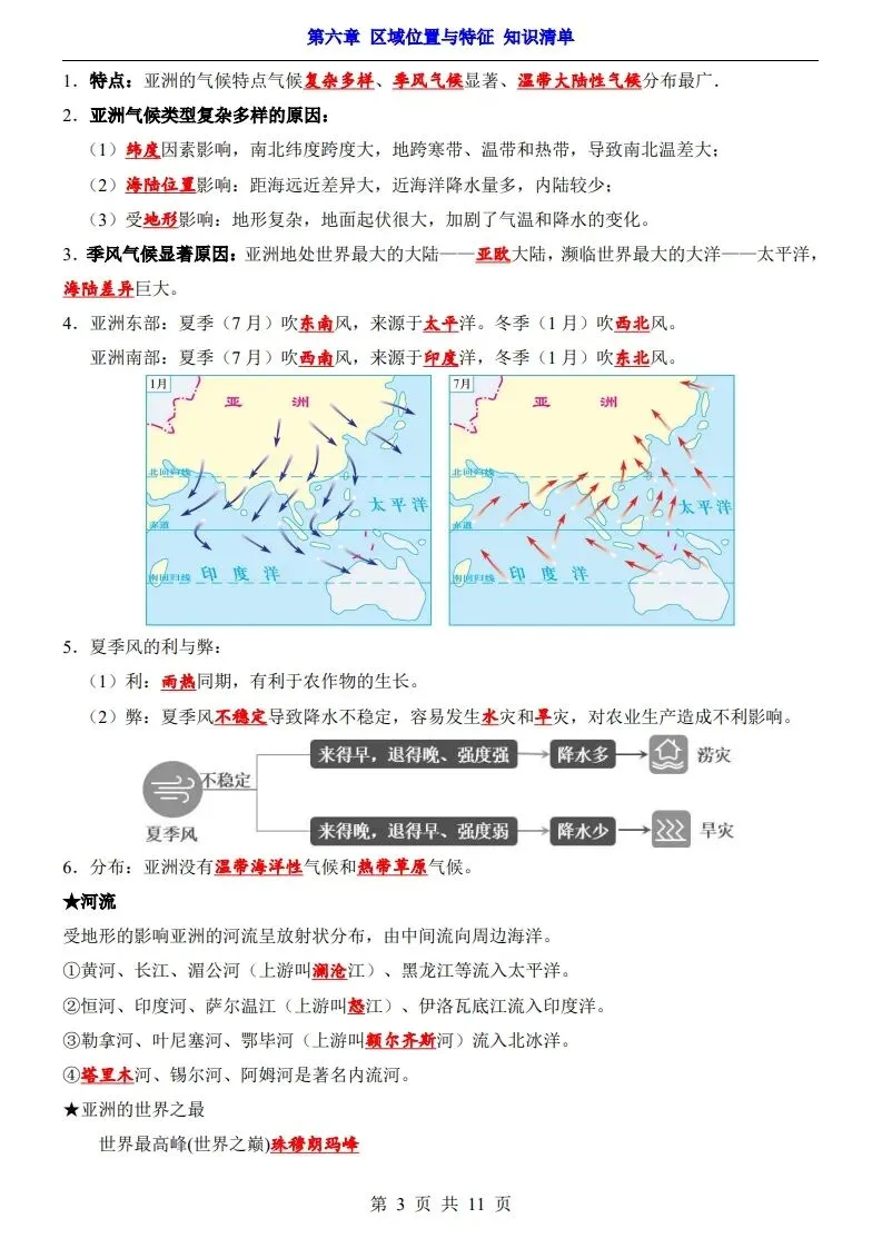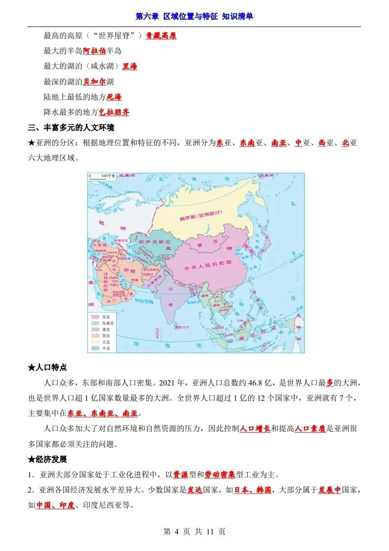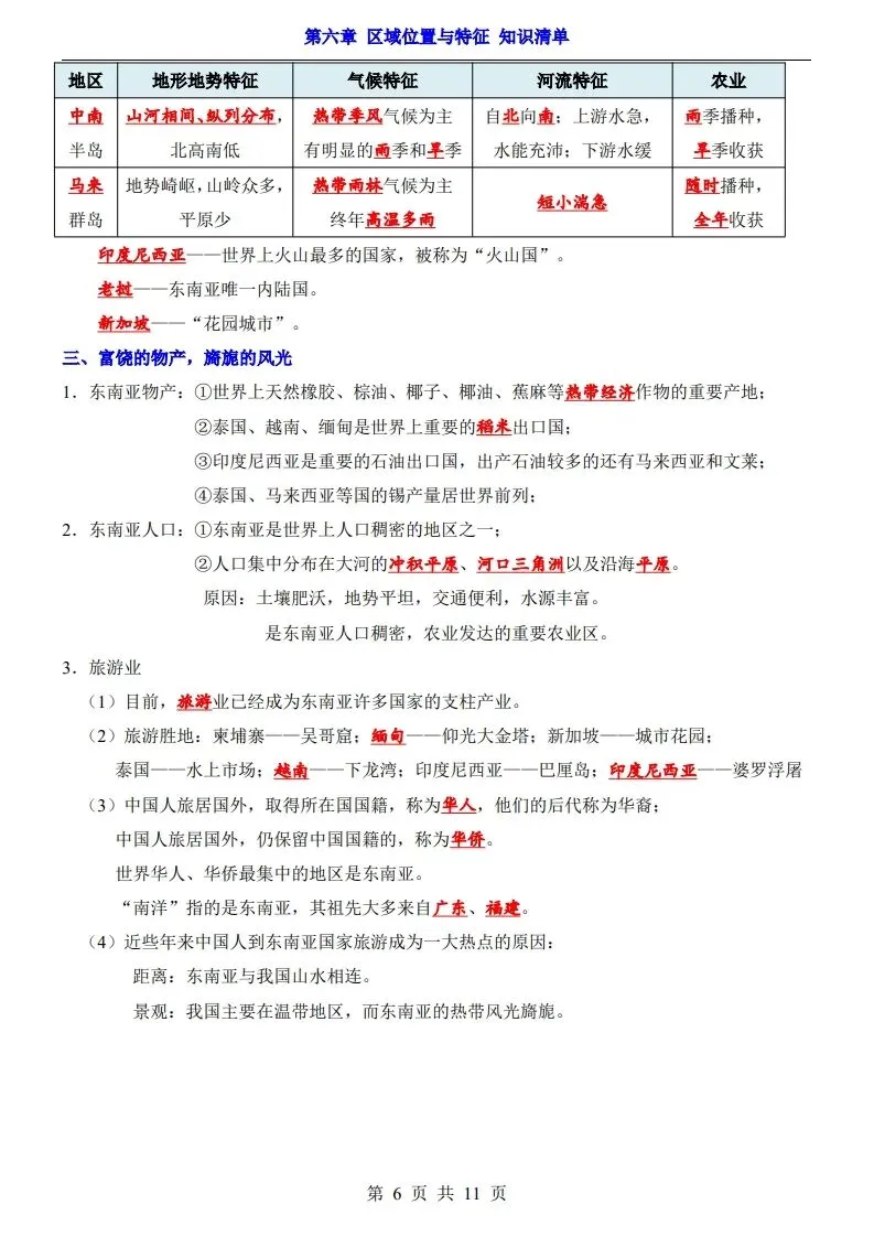 (2026春季学期)七年级下册新版粤人版地理知识点清单,电子版可直接打印使用!