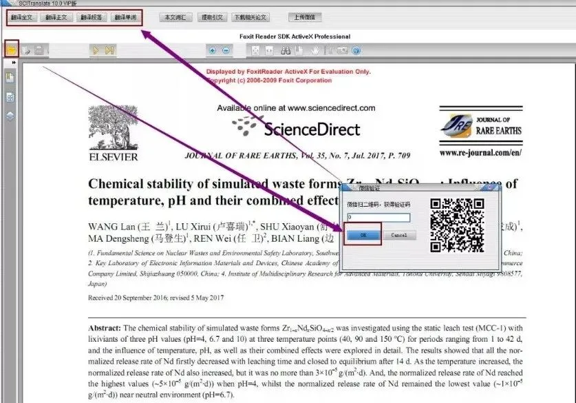 使用方法:运行主程序后,打开想要翻译的PDF文献,弹出的信息框直接点击【OK】,再选择翻译全文/翻译正文。