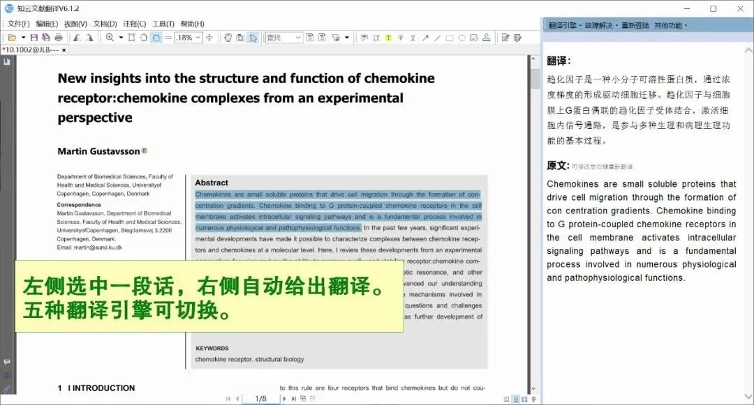 使用方法:打开软件,导入PDF文献,翻译结果在右侧,同时也会有划线的段落原文。翻译引擎有百度、有道、谷歌、搜狗,不同翻译引擎可供选择。