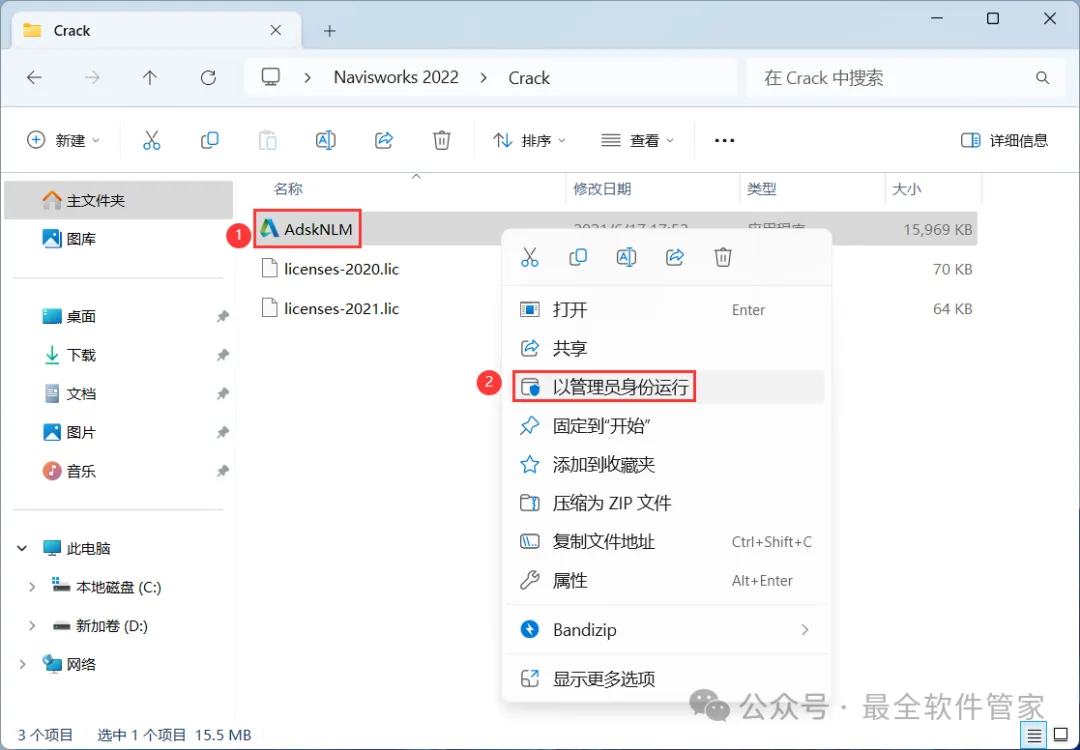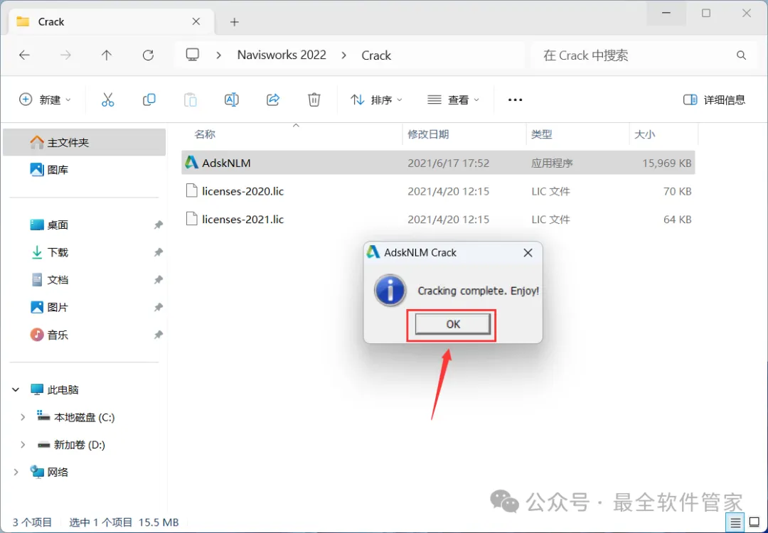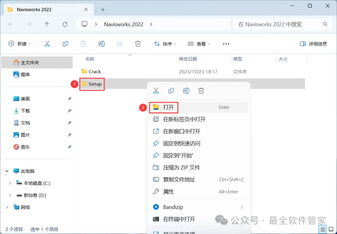 10、回到Navisworks 2022文件夹,找到【Crack】文件夹,右键【打开】它