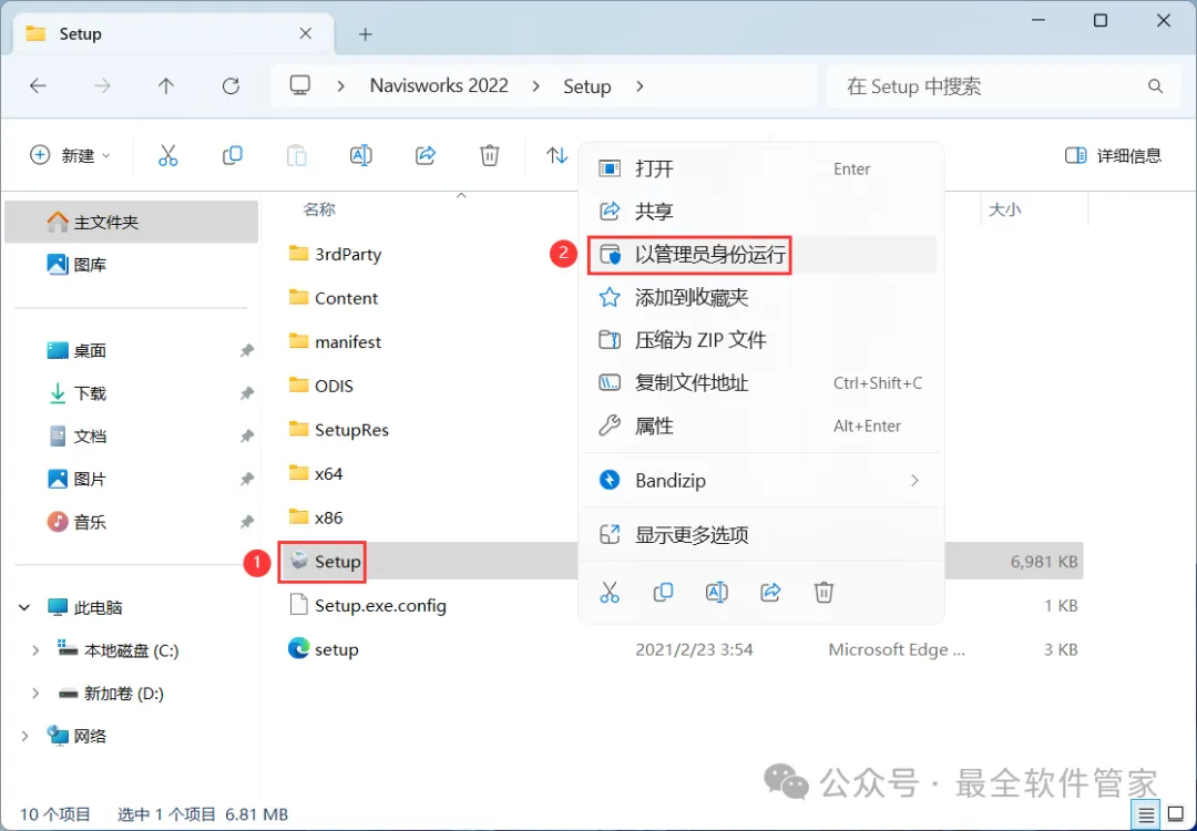 4、找到【Setup】应用程序,右键选择【以管理员身份运行】它