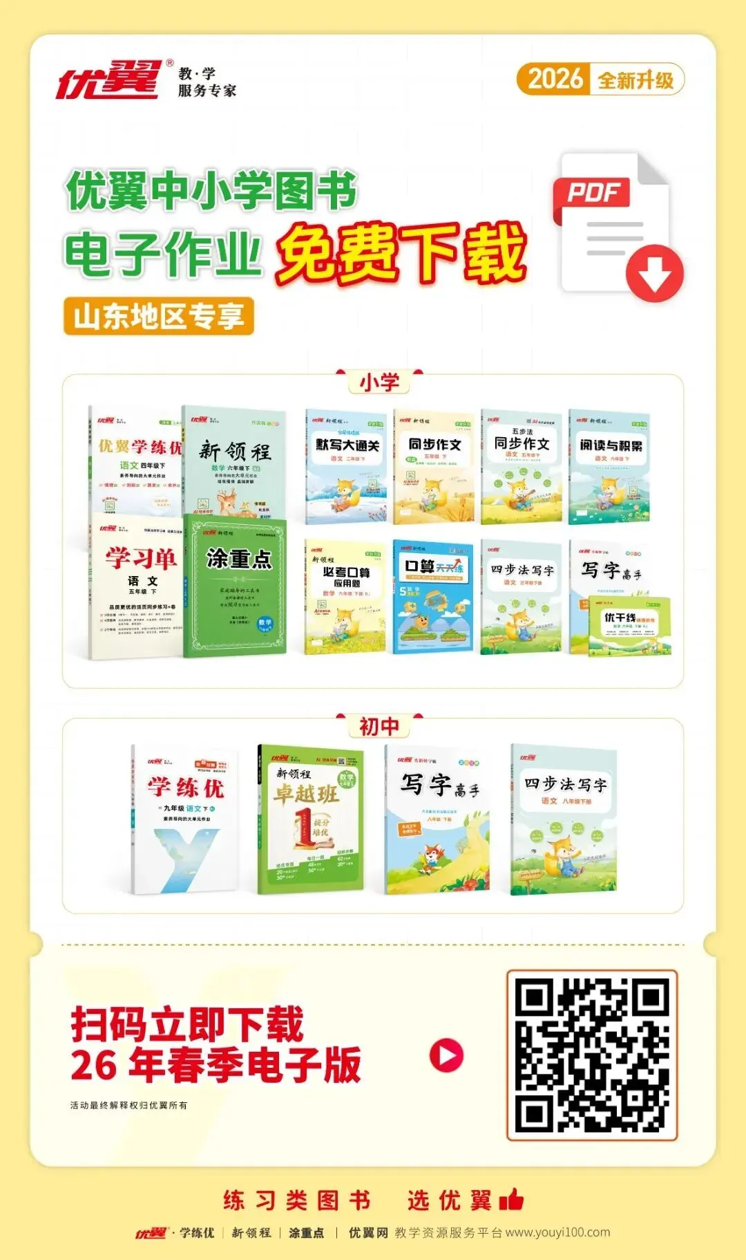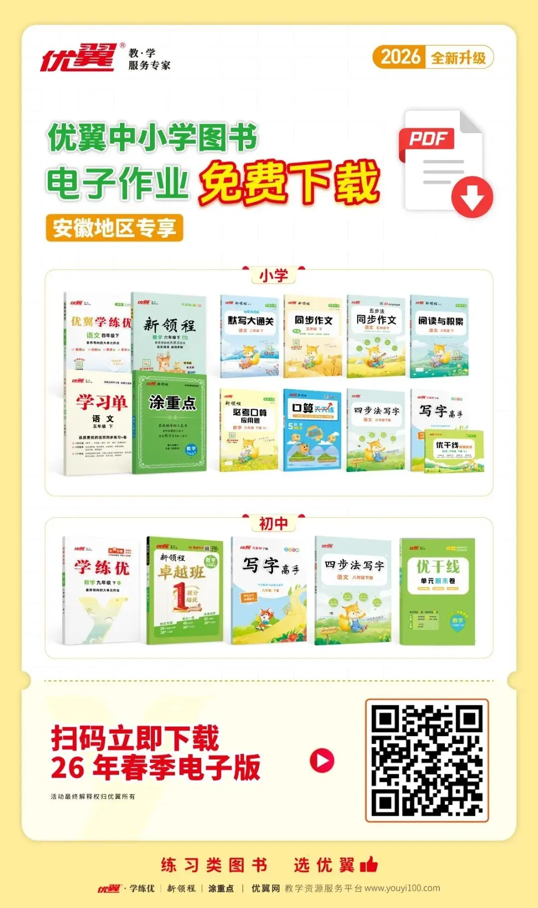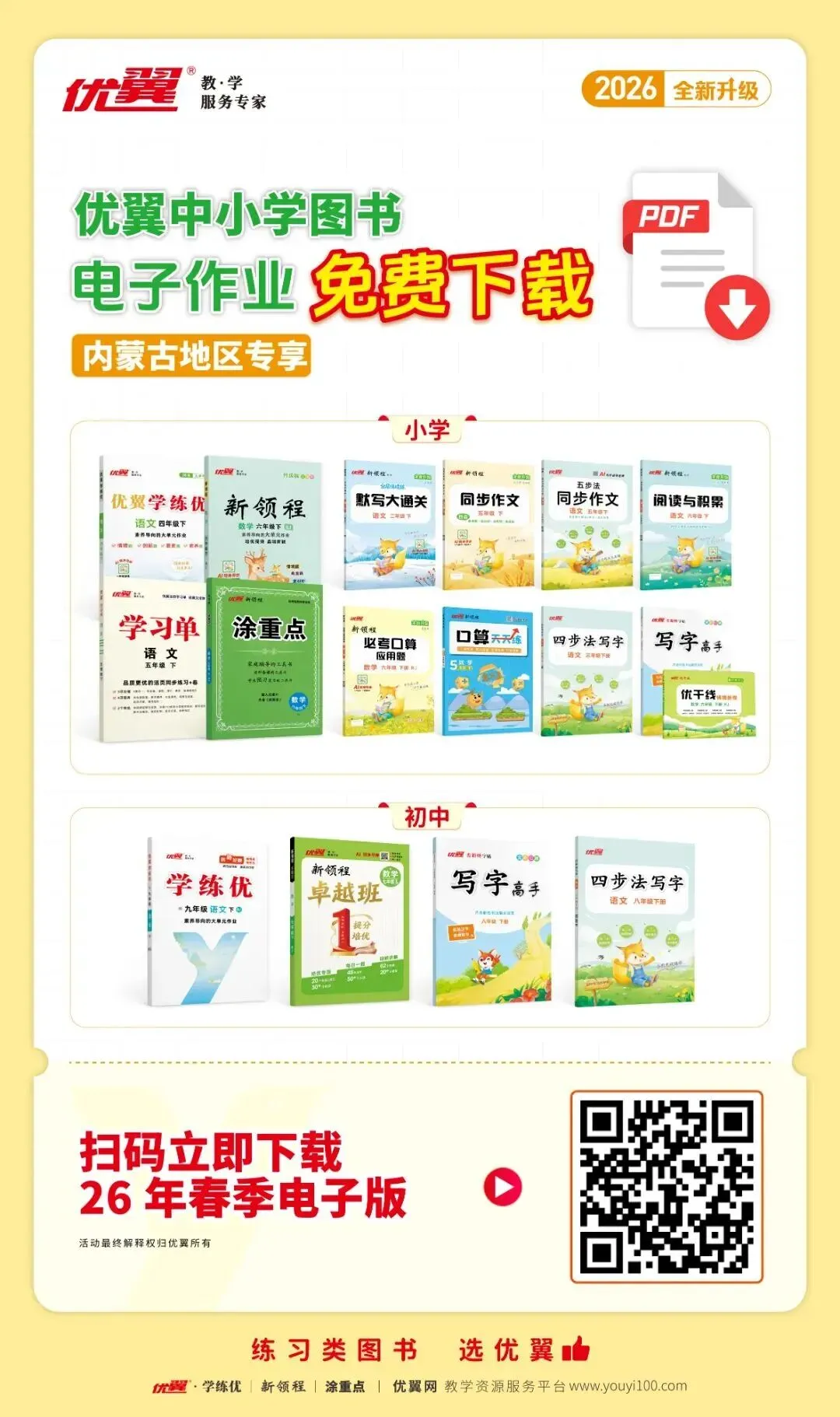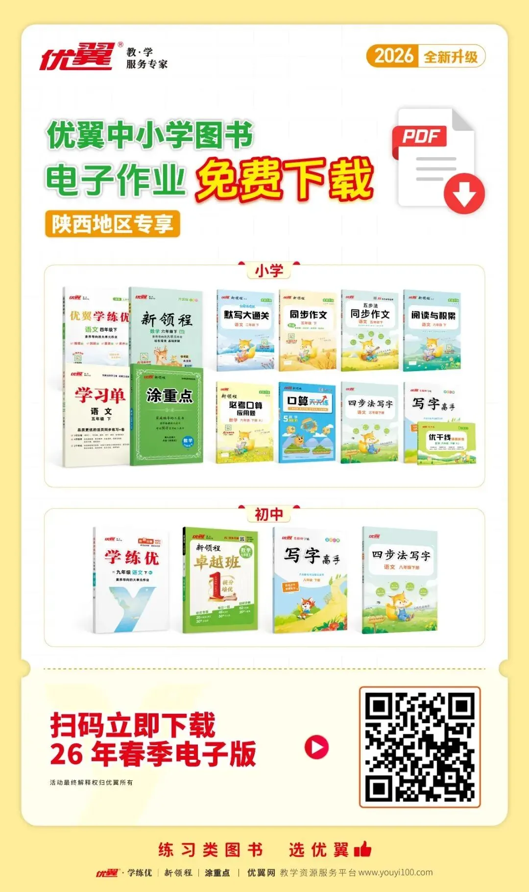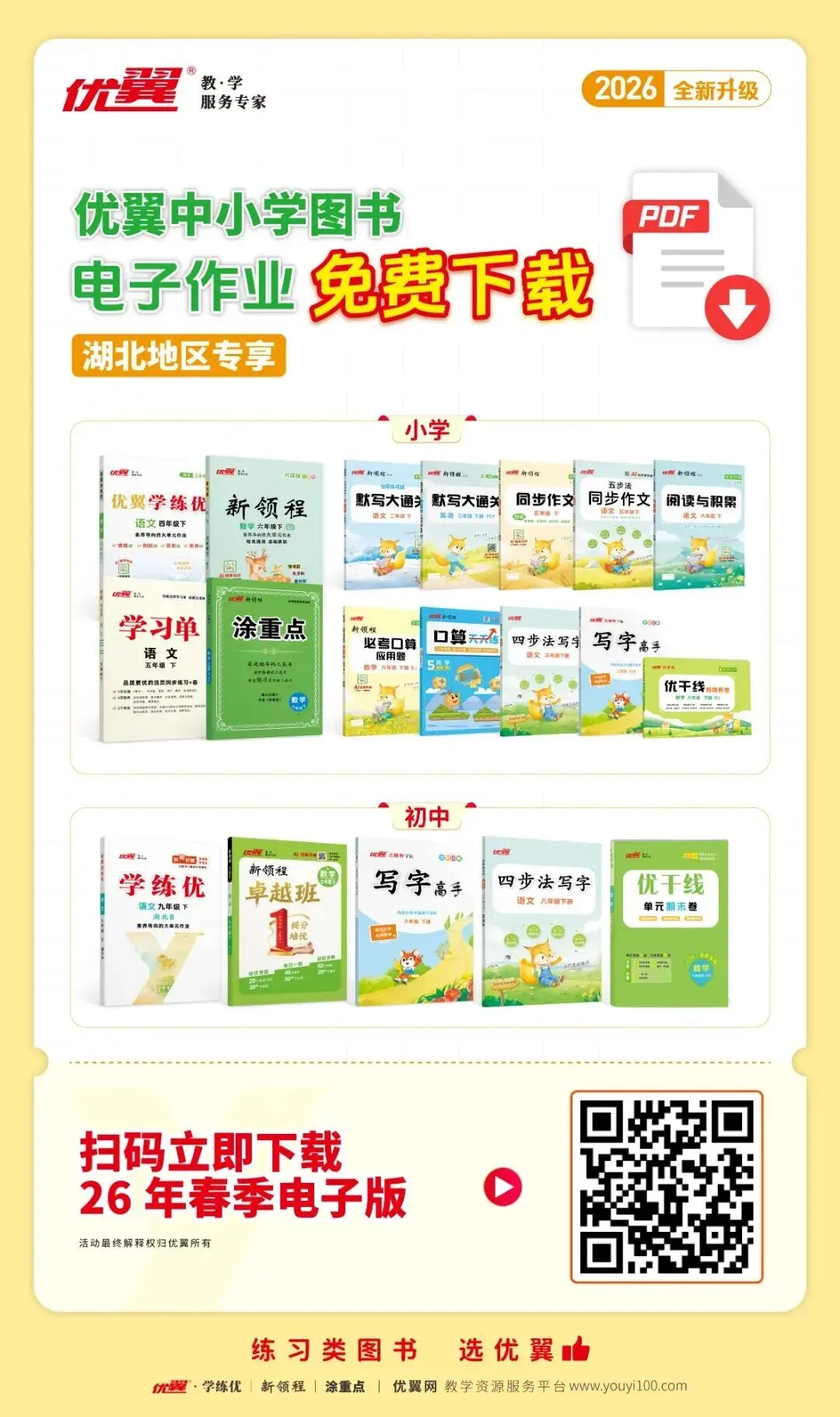 速领!优翼26春中小学系列图书PDF电子版资源,限时免费下载开启!