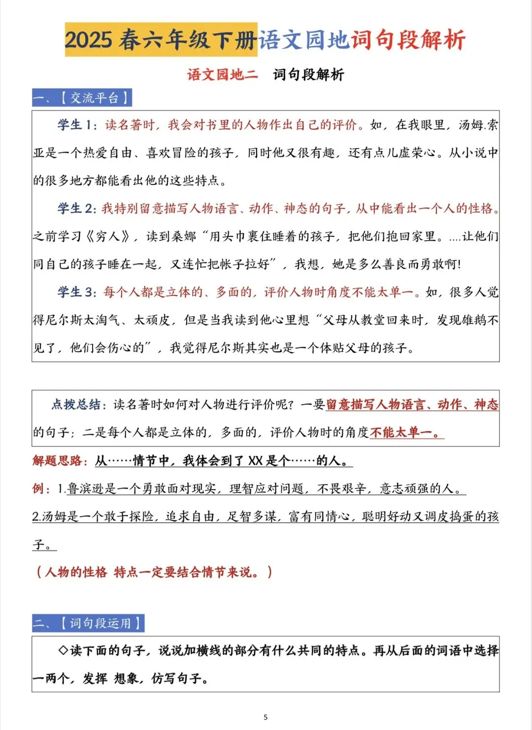 本站文章均为手工撰写未经允许谢绝转载:夜雨聆风 » 六年级下语文园地词句段解析|可打印