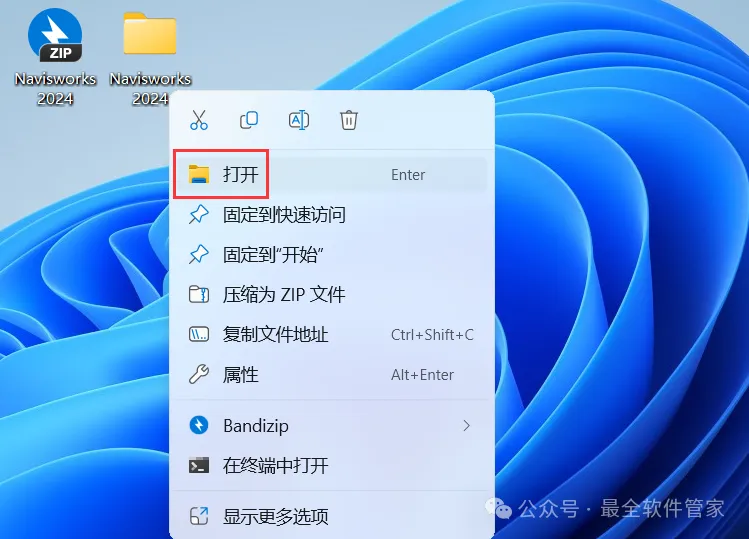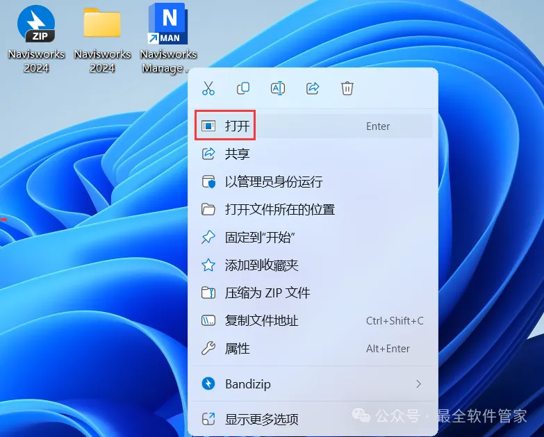 12、回到桌面,右键桌面上的【Navisworks 2024软件图标】,点击【打开】