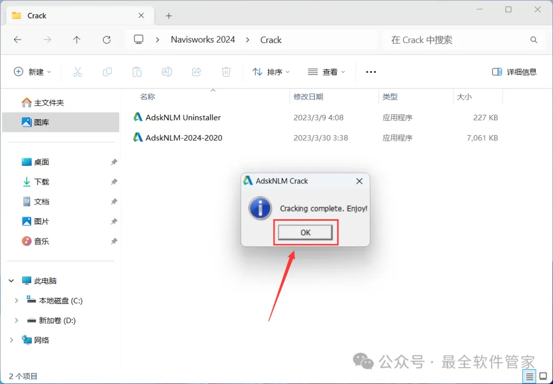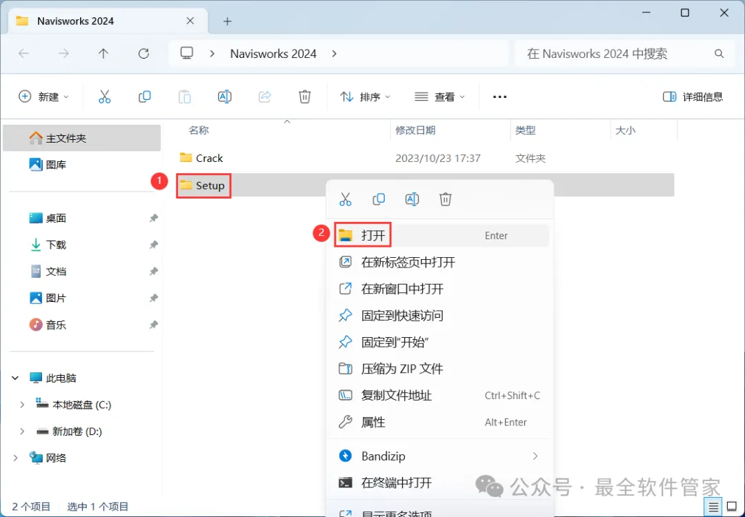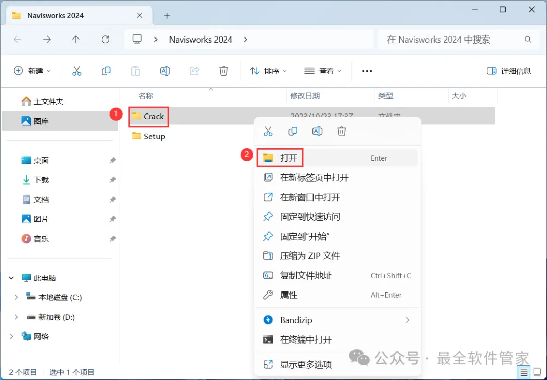 9、回到Navisworks 2024文件夹,找到【Crack】文件夹,右键【打开】它