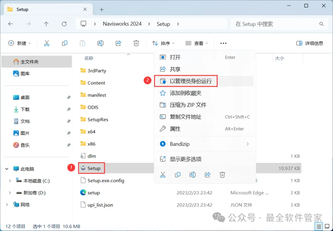4、找到【Setup】应用程序,右键选择【以管理员身份运行】它