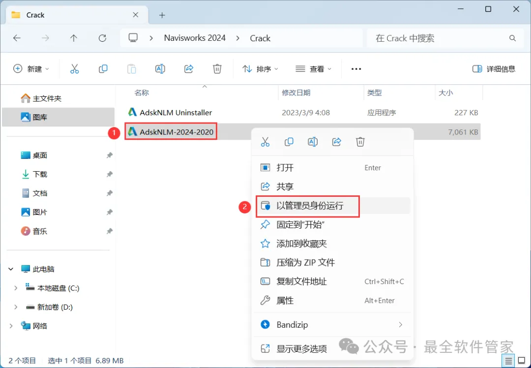10、找到【AdskNLM-2024-2020】应用程序,右键选择【以管理员身份运行】它