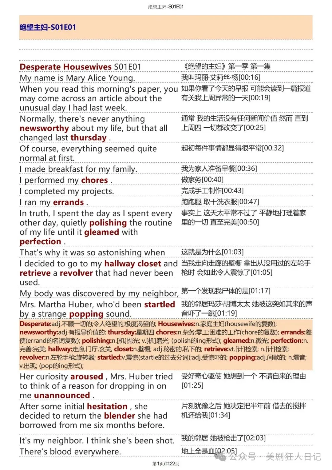 绝望的主妇台词本pdf(双语精排版)全8季+MP3+单词备注