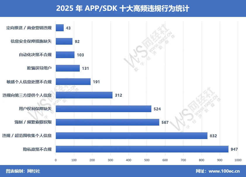 全年四大部委累计发布通报 30 批次,涉及违法违规 APP、SDK 共计1358款,覆盖生活服务、工具、教育、医疗、金融等全场景,违规行为呈现隐蔽化、链条化、高频次特征,监管触角从终端APP延伸至SDK、小程序、车载应用等全生态环节。