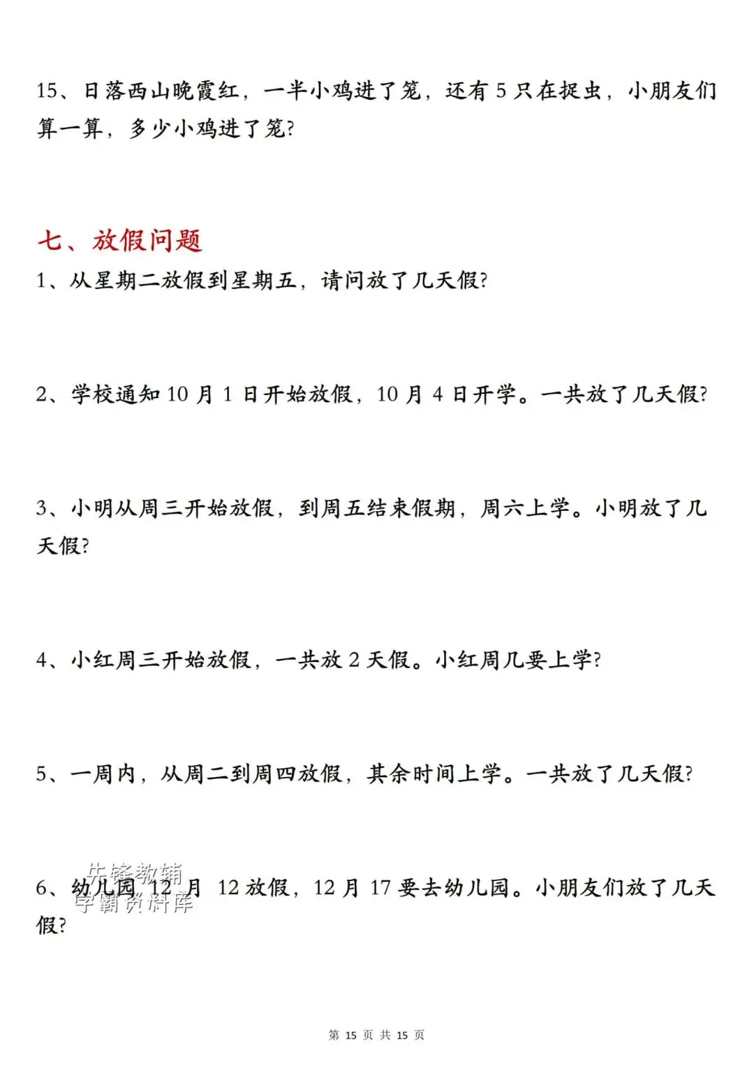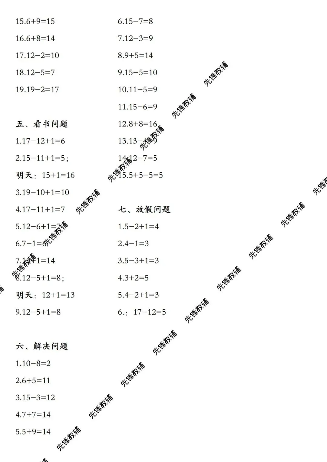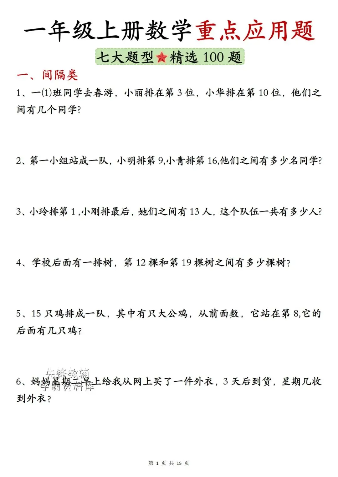 一年级(上)册数学《重点应用题》电子版可打印