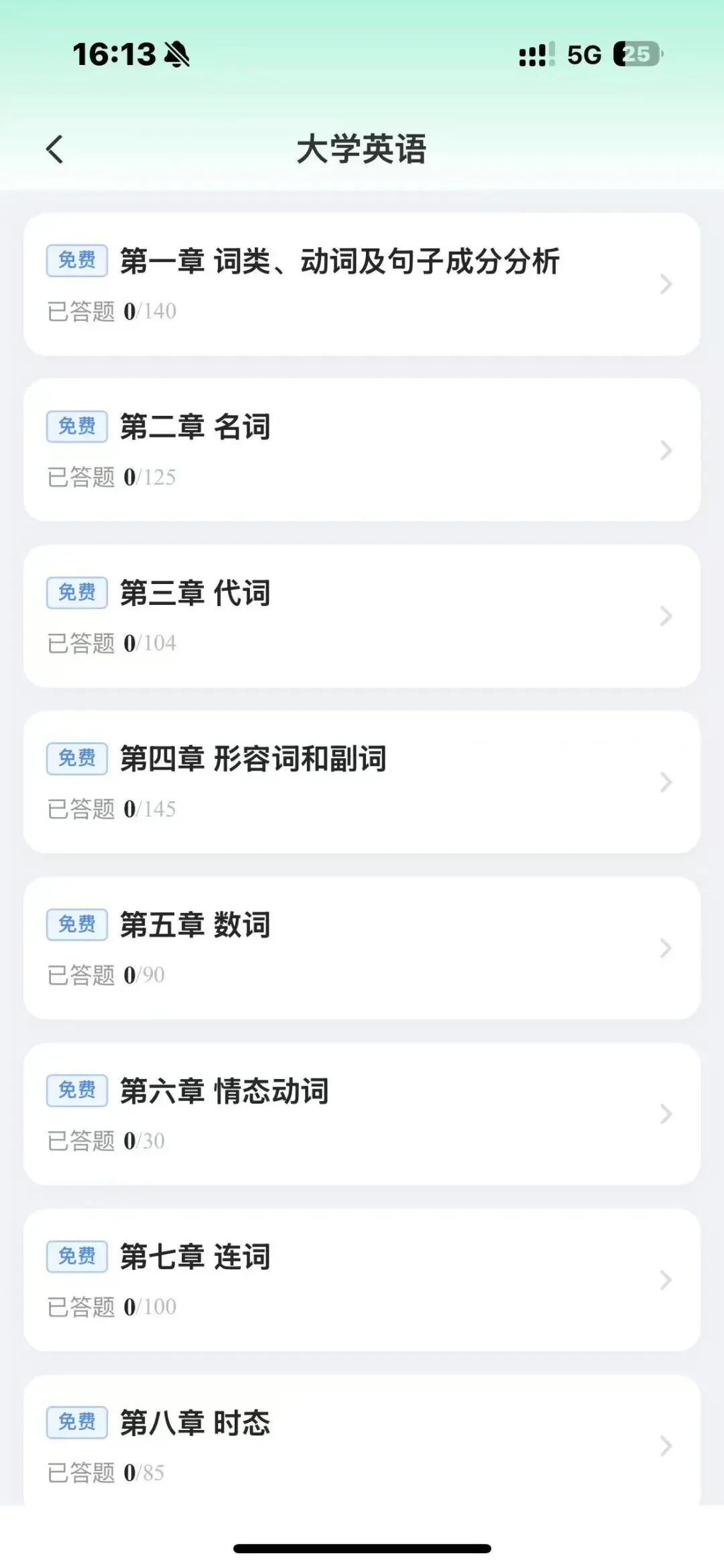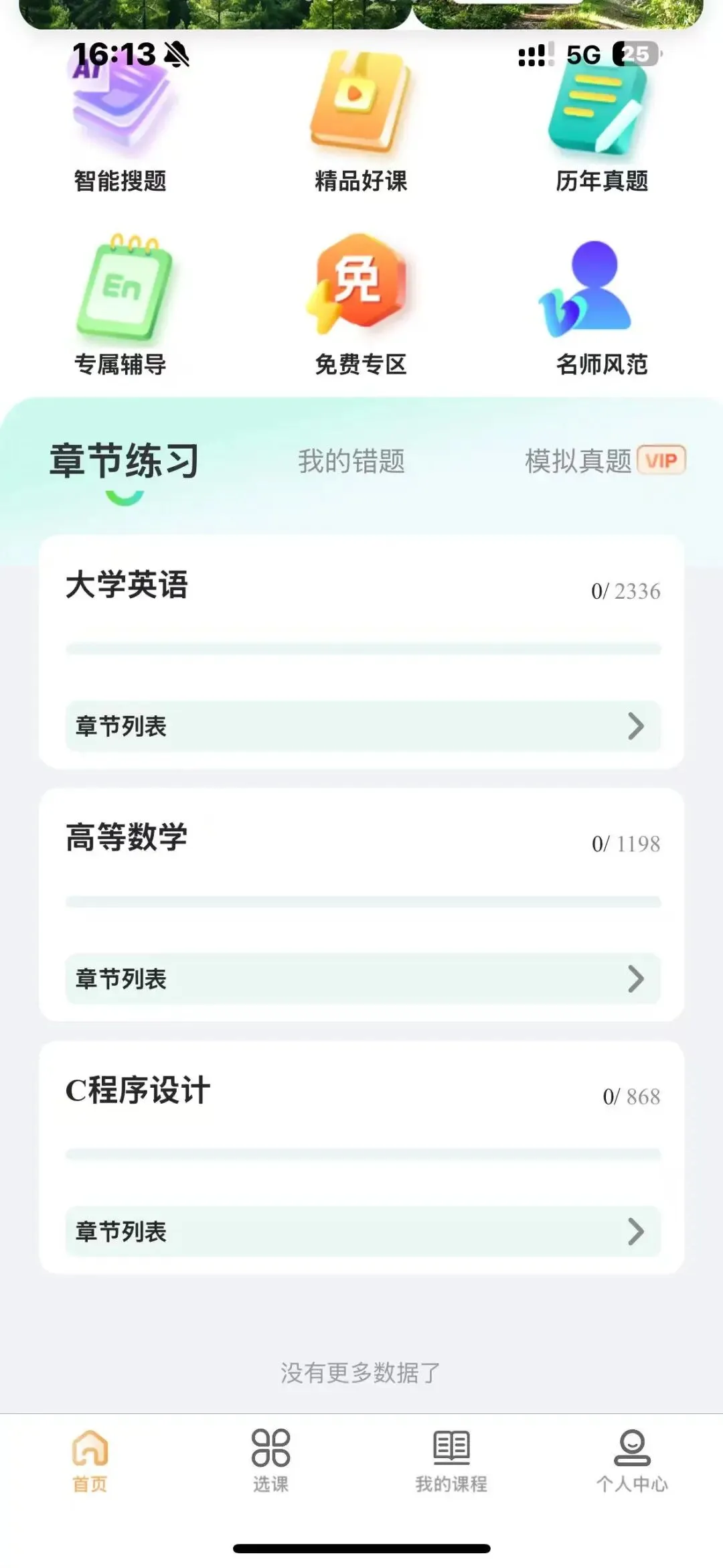 章节练习:按学科和章节分类,适合基础阶段巩固知识点。