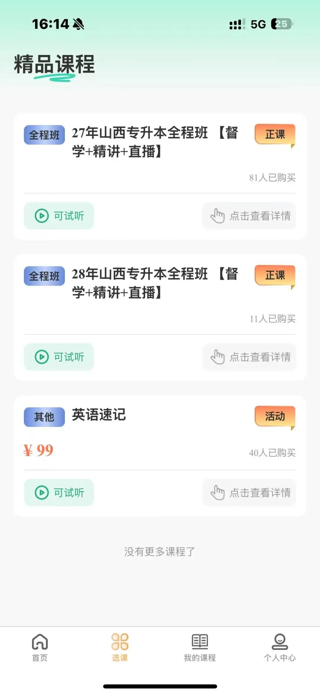 1. 进入课程中心:在首页点击“选课,进入课程列表。