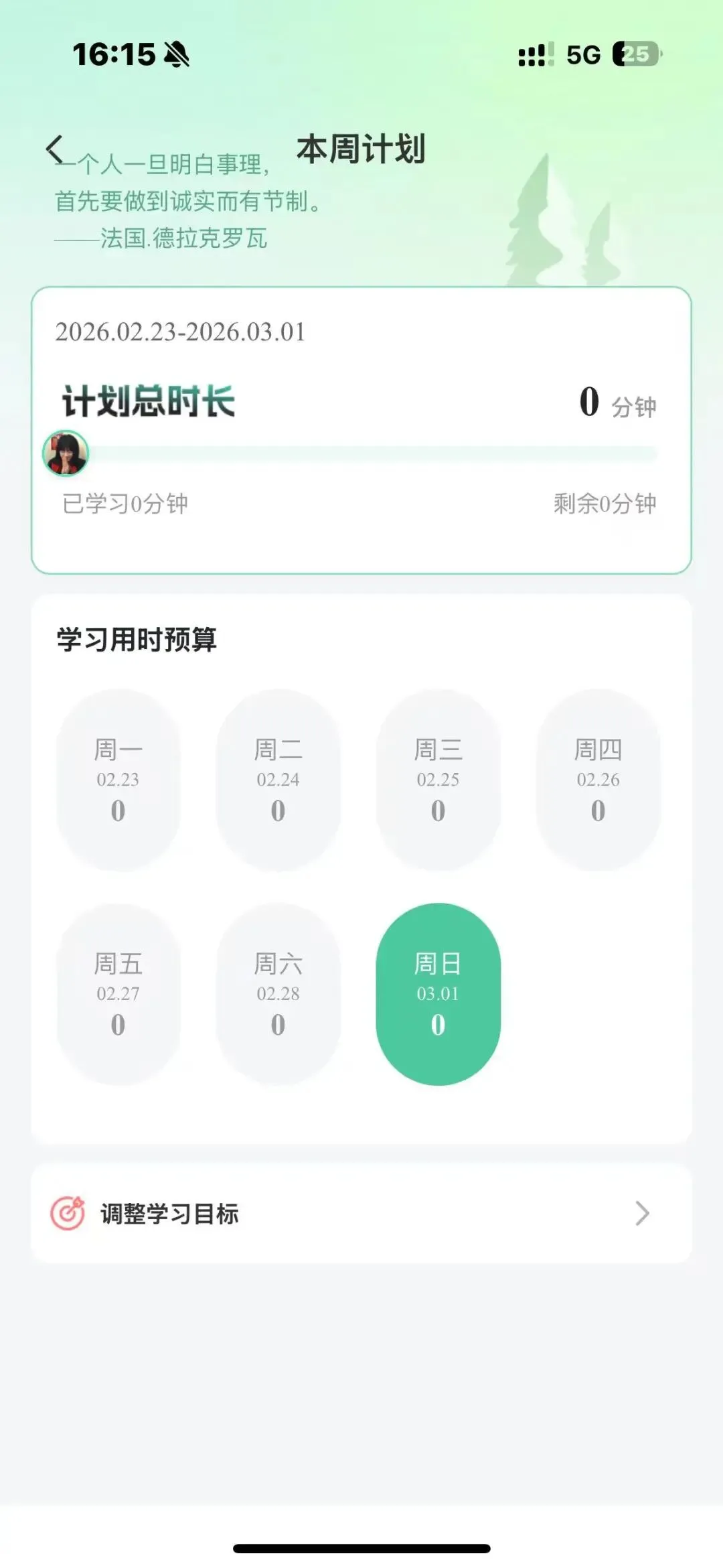在“我的”页面点击“学习计划”,根据自身基础、备考时长和目标分数,能够制定有效的学习计划,督促自己学习。