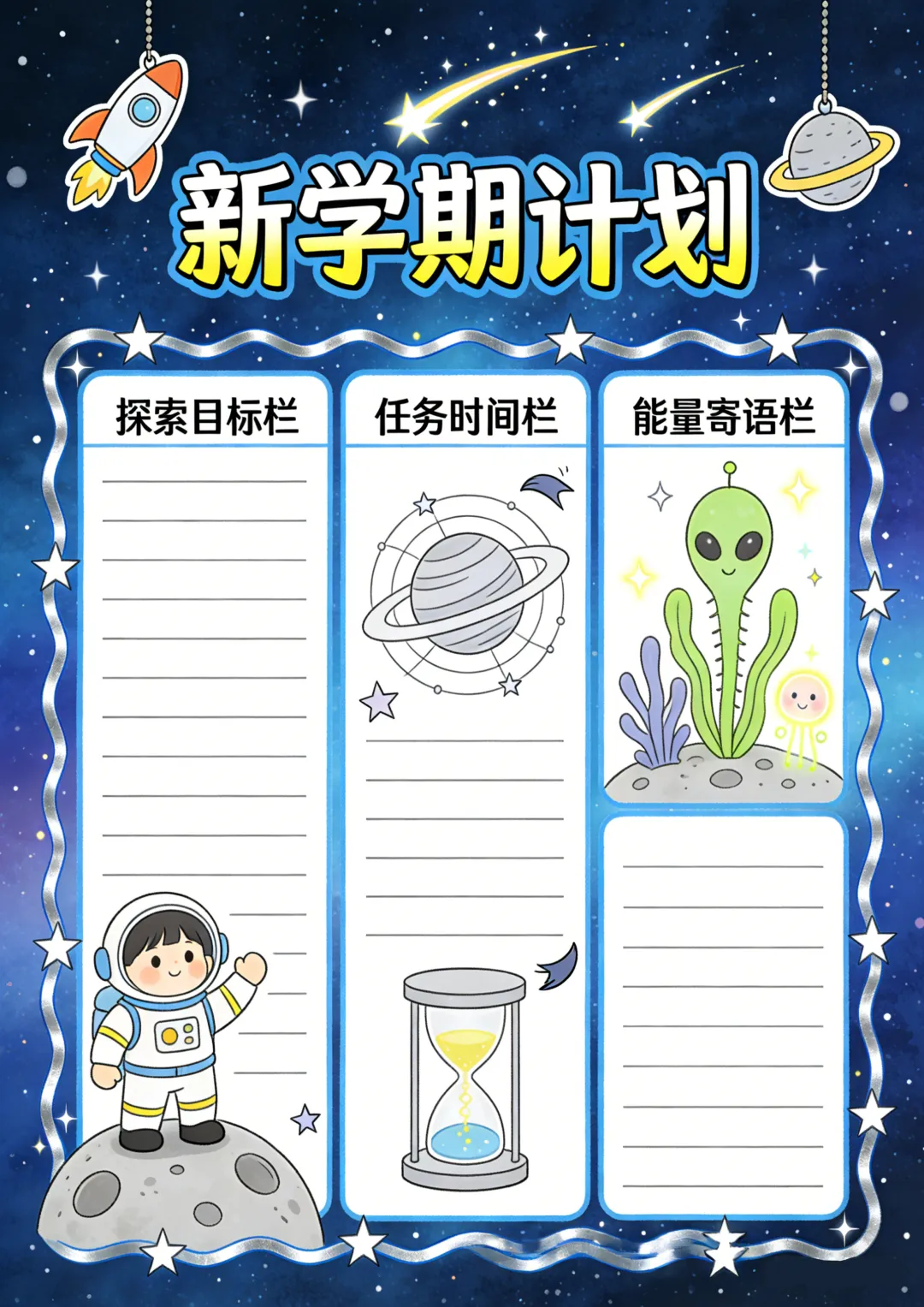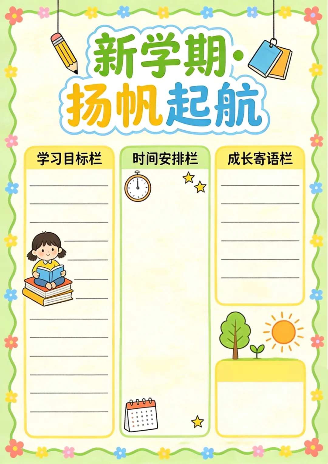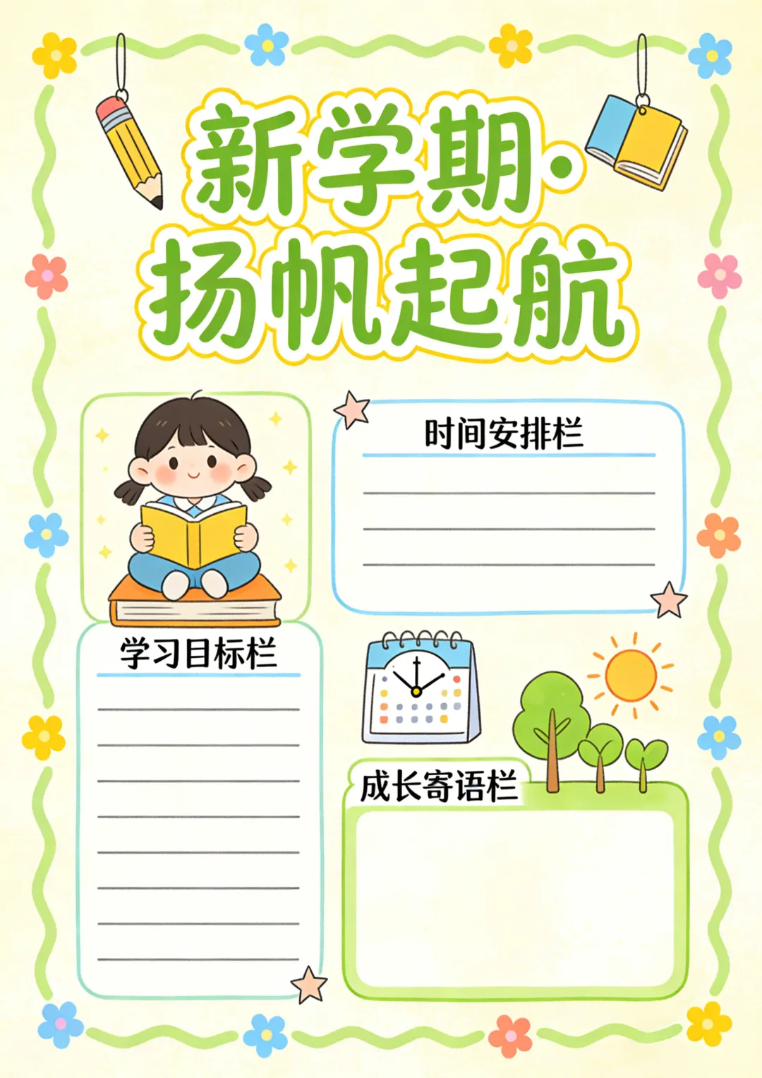 收藏备用 | 各类计划表可打印 新学期计划表 学习计划表 假期计划表 阅读计划表等 本期为大家整理了计划表,包含新学期计划表、假期计划表、学习计划表、阅读计划表、自然记录表,文章末尾还准备了空白的通用版,能满足大部分表格制作的需要。 本账号未设置水印,保存后即可使用,转载请注明出处。 空白计划表