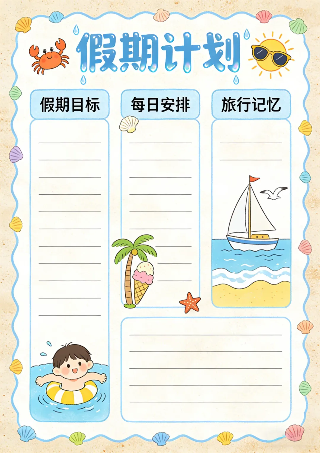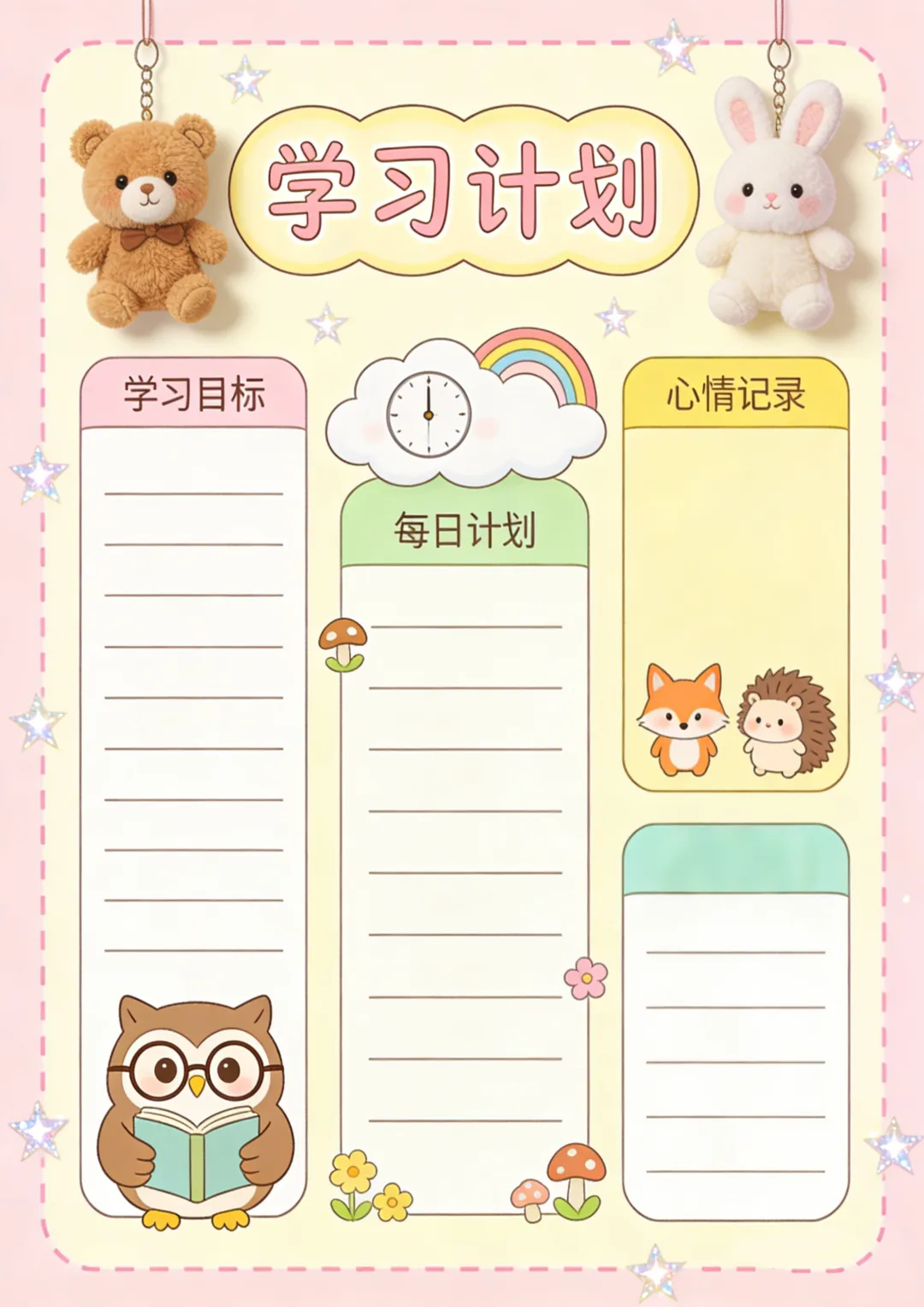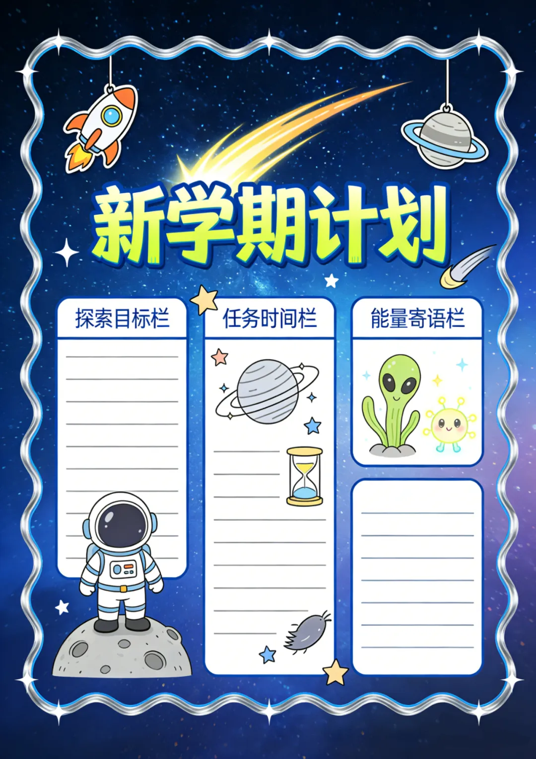 收藏备用 | 各类计划表可打印 新学期计划表 学习计划表 假期计划表 阅读计划表等 本期为大家整理了计划表,包含新学期计划表、假期计划表、学习计划表、阅读计划表、自然记录表,文章末尾还准备了空白的通用版,能满足大部分表格制作的需要。 本账号未设置水印,保存后即可使用,转载请注明出处。 空白计划表