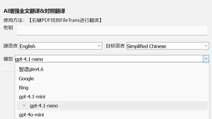 插件调用的都是业界领先的AI大模型,包括DeepSeek、智谱、GPT、Google等。这些AI模型在学术文献翻译方面表现优异,能够准确理解专业术语和复杂句式,翻译质量远超传统翻译工具。