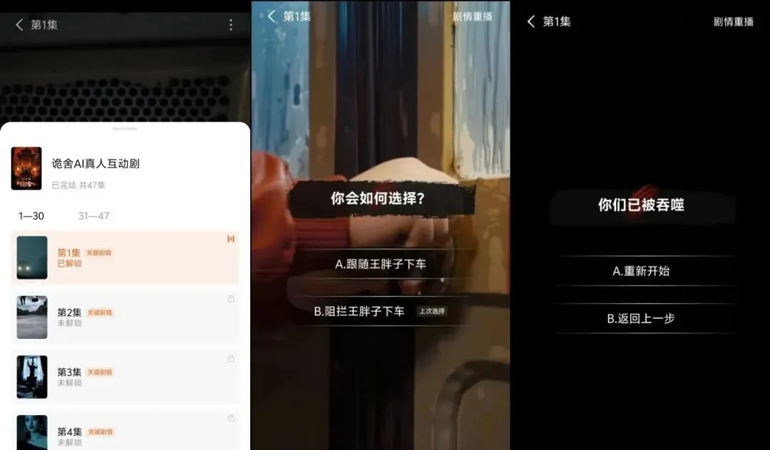据网友分享,观看该剧需要对每集进行解锁。看完一集后,会跳出来A、B两个不同的故事情节选项,有的选项可以解锁下一集,有的选项则是会导致关键人物的死亡。某些关键角色死亡后,用户会面临“回溯”类的选项。目前该剧没有分享选项,也无法通过搜索找到,只能在历史观看记录中找到。