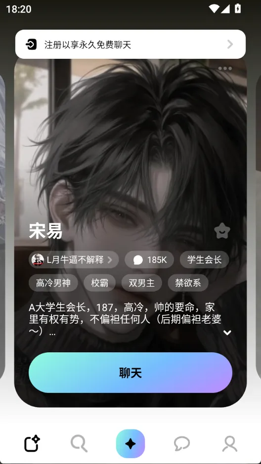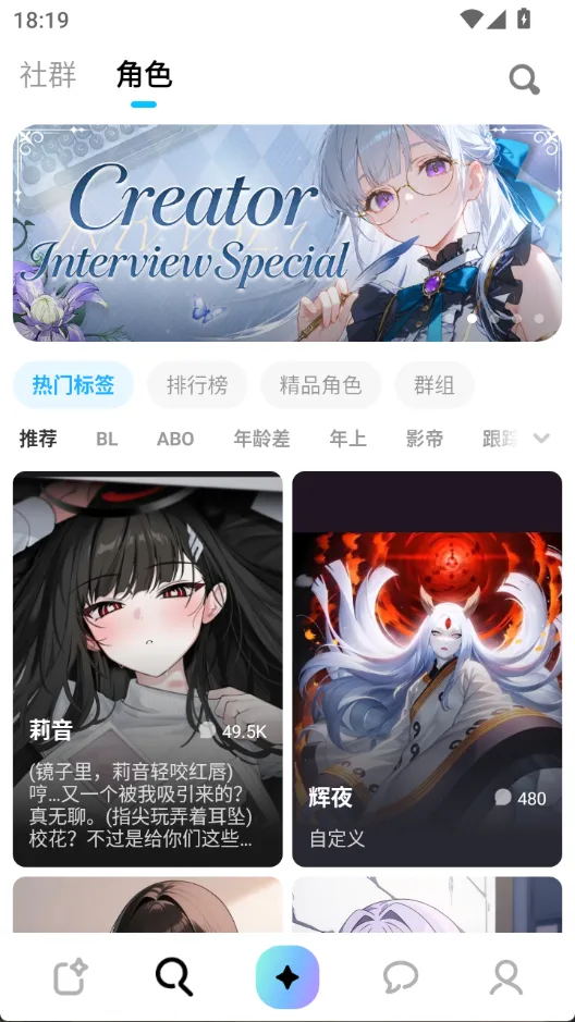 你们看这角色库,直接把我二次元 DNA 动了!病娇校花、高冷学生会会长、自定义白毛神系角色…… 不管是 BL、ABO 还是年上、影帝都有,连标签都精准踩在 XP 上,想磕啥直接搜,根本不愁没粮!