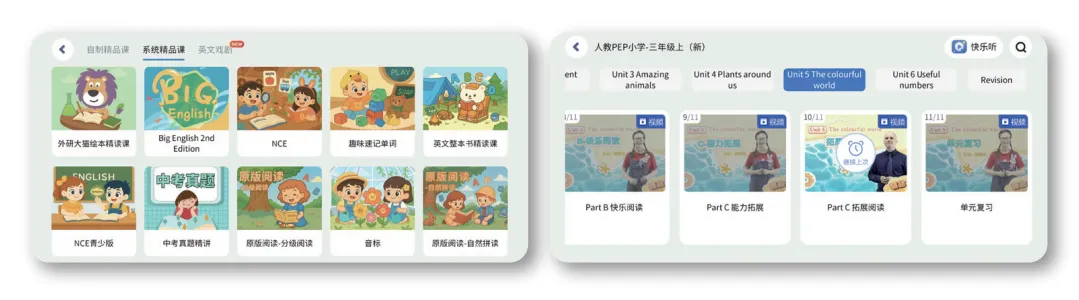 整合海量同步教材、原版绘本及配套习题,全面覆盖听说读练记。让学员能够利用碎片时间自主学习,拓展学习场景,巩固教学成果。