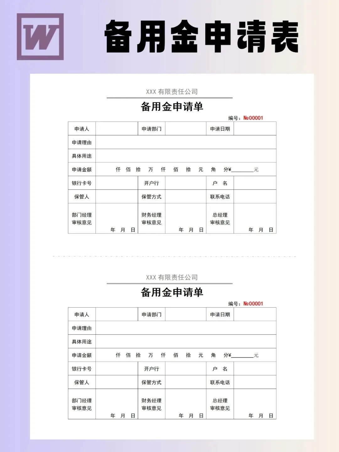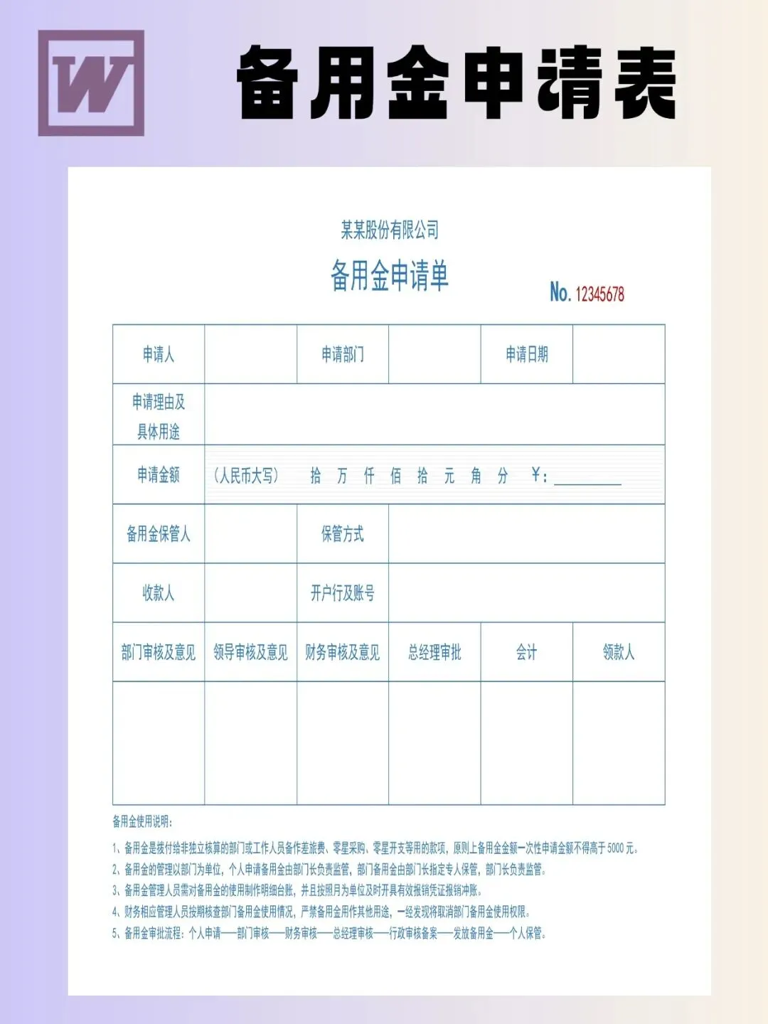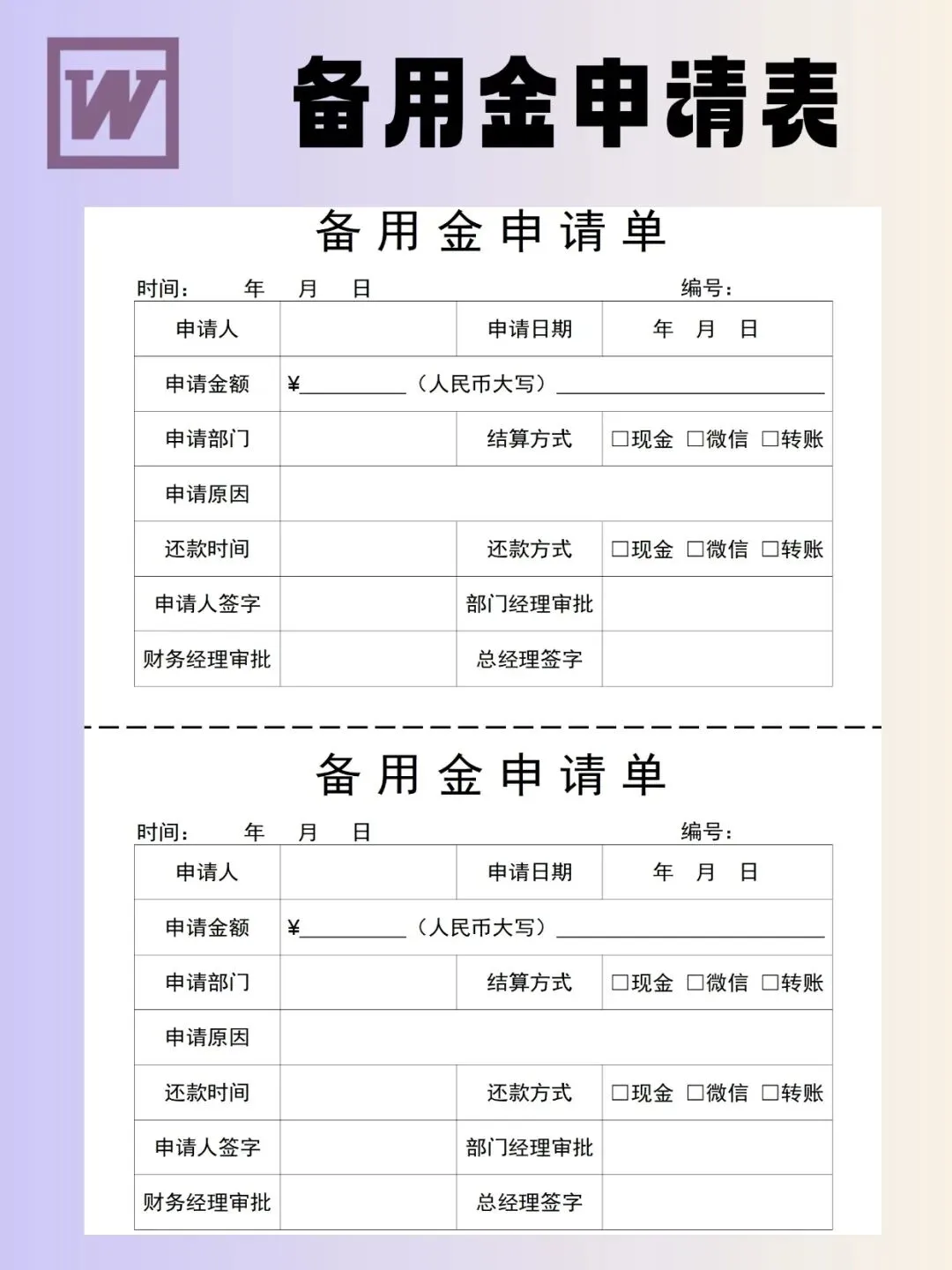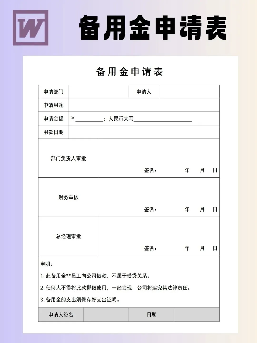 备用金申请表模板