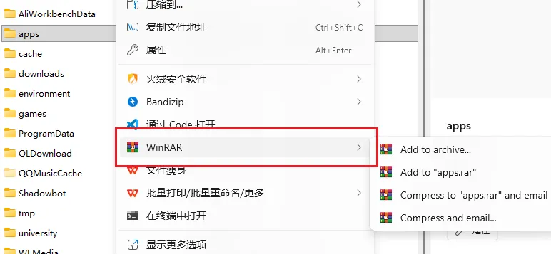 这里选择D盘的apps下的WinRAR目录