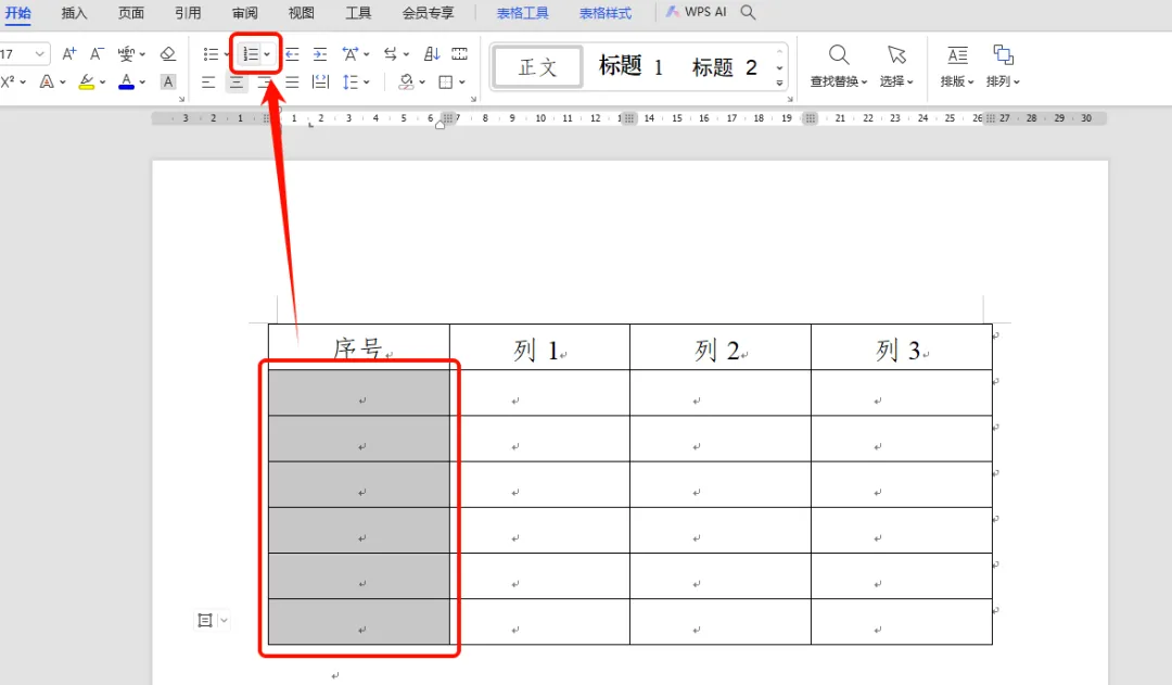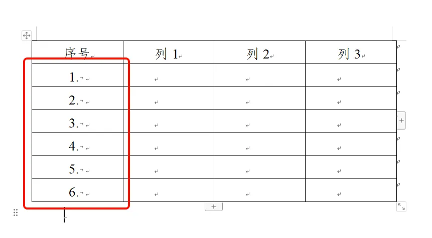 得到效果如下图,序号后会出现【.】和【制表符(即小箭头)】,导致序号整体无法居中。如需解决,看下一步骤。