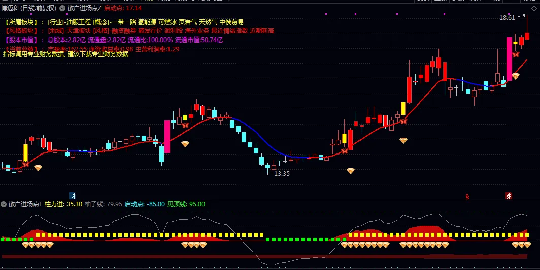 副图”柱力进”黄色柱体放大,动能值突破20阈值