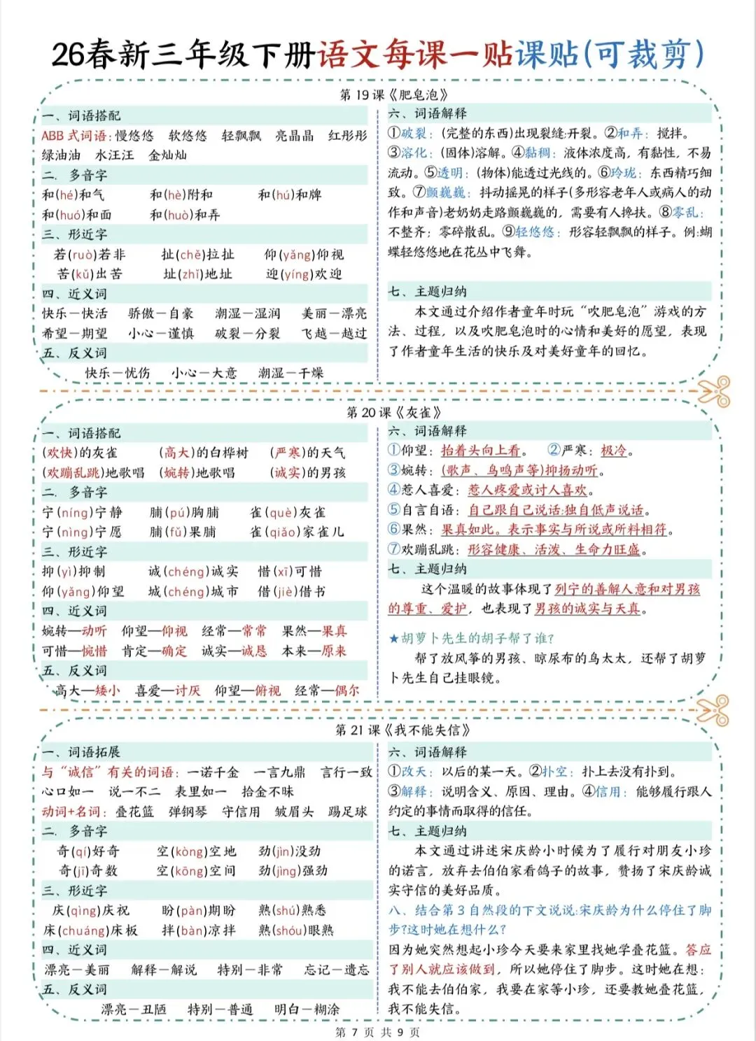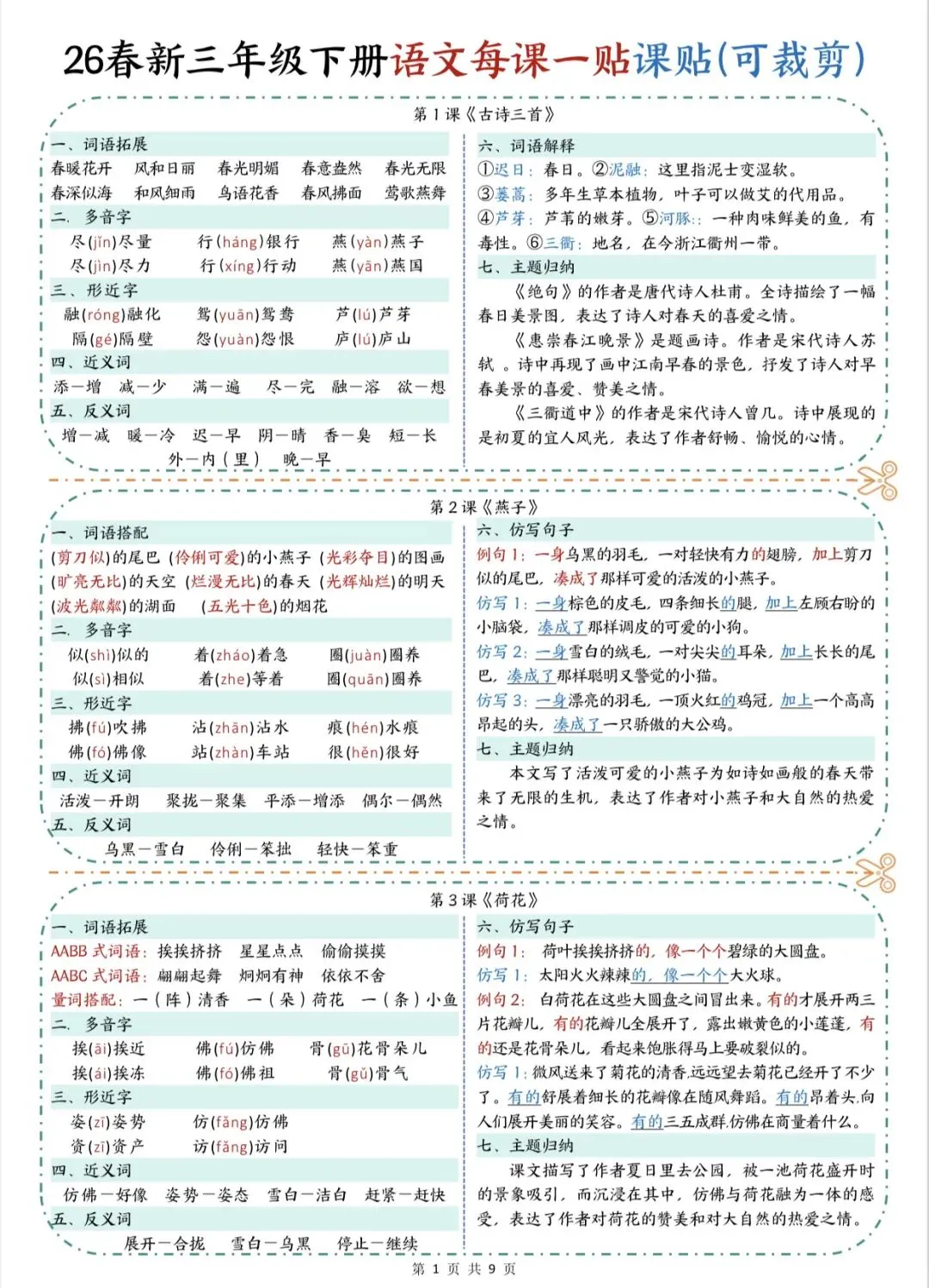本站文章均为手工撰写未经允许谢绝转载:夜雨聆风 » 26春新三年级下语文每课一贴课课贴|可打印