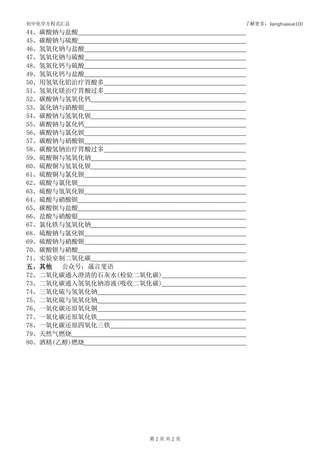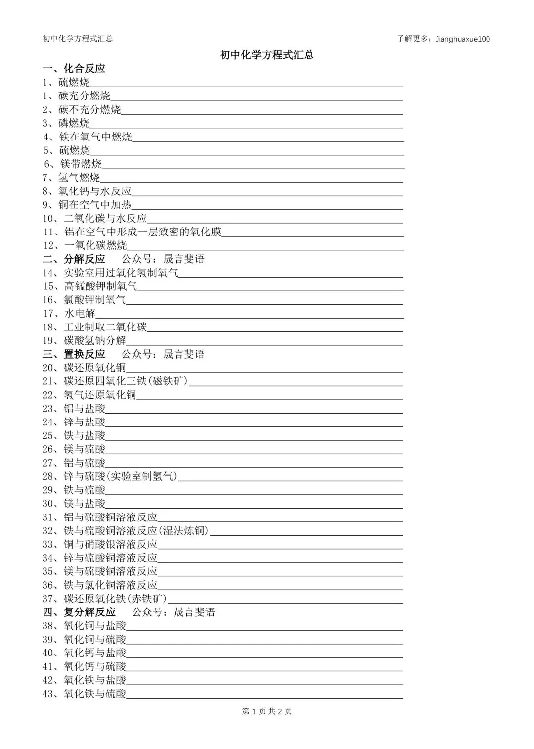 初中化学化学方程式汇总(含PDF)