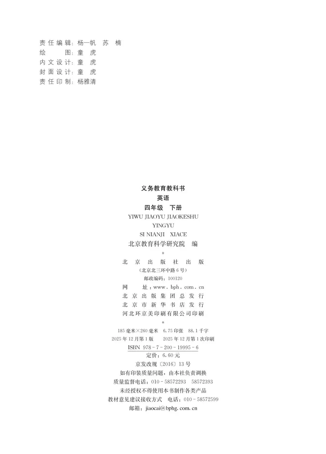 2026新北京版四年级下册英语电子课本PDF(高清正式版新教材丨免费下载)