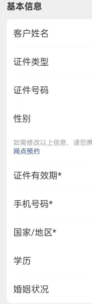 注意:客户姓名,证件类型,身份证号和性别,基本要到线下网点去办理更正!!!