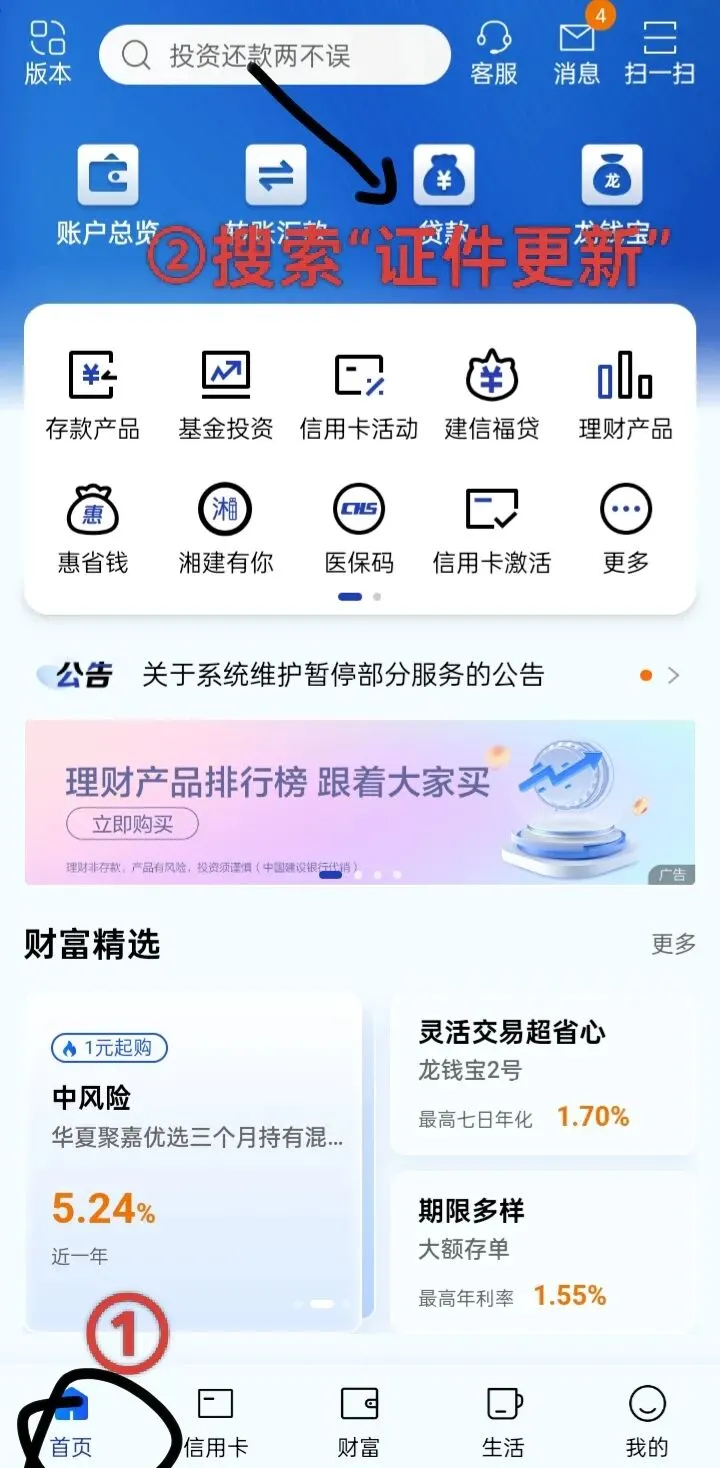 进入 首页→ 搜索 “证件更新”