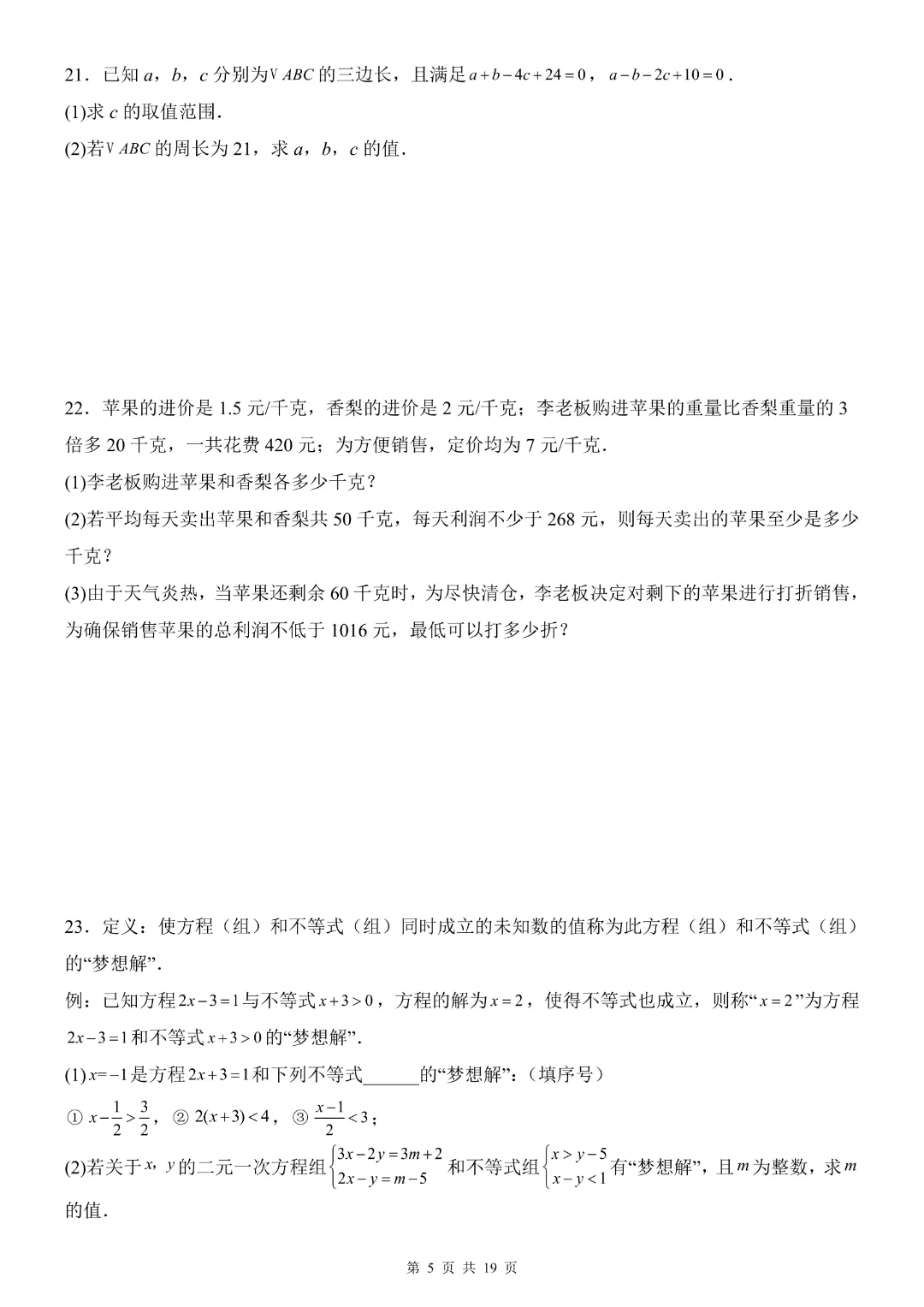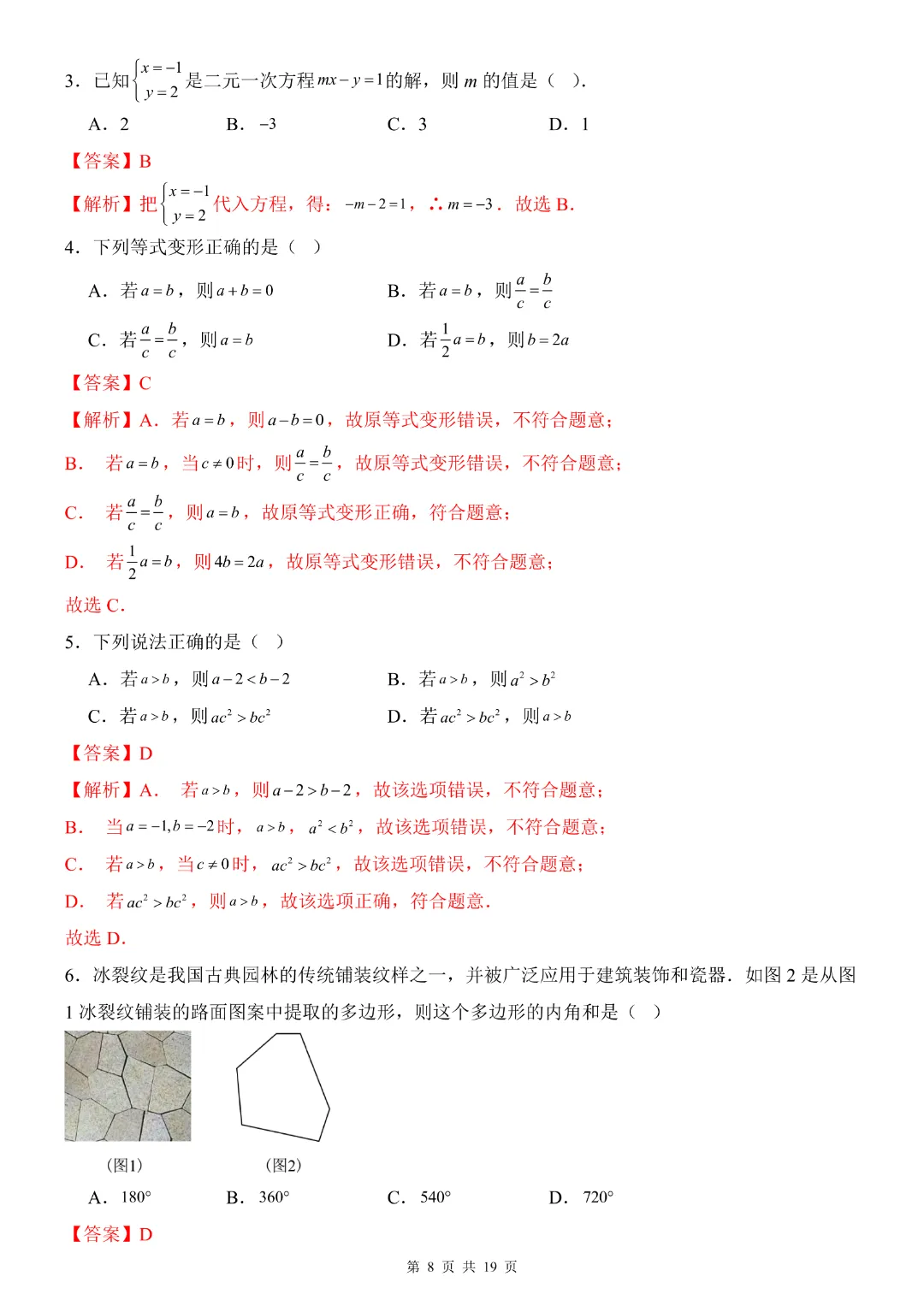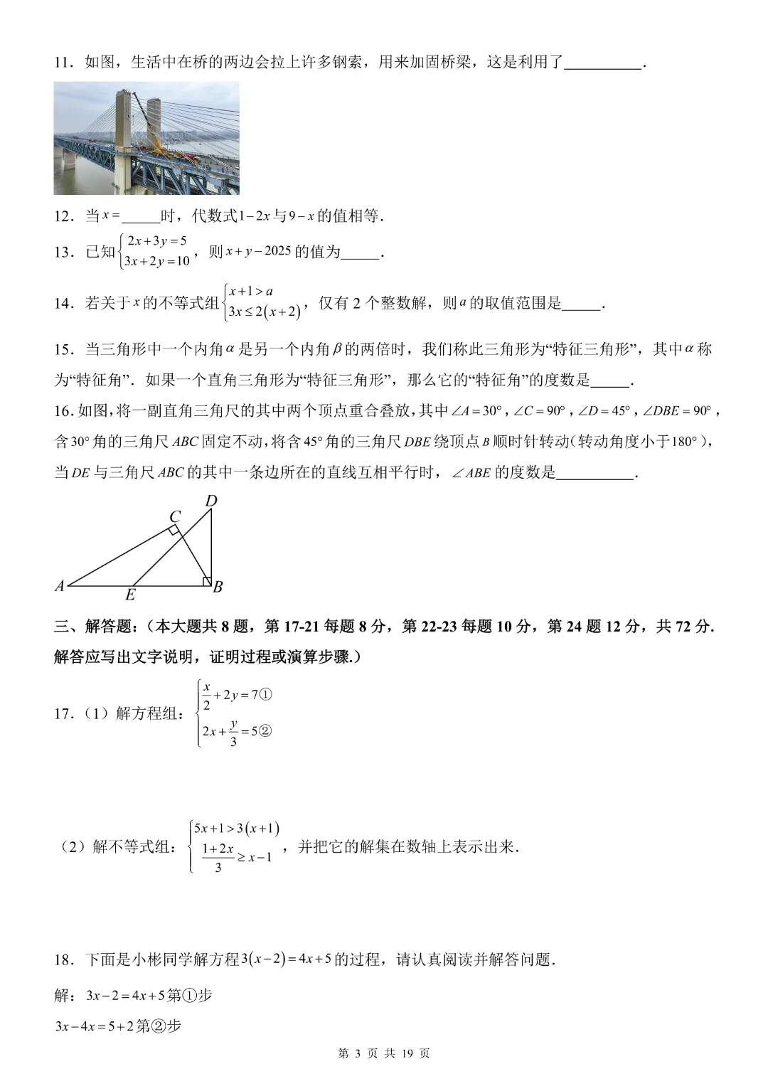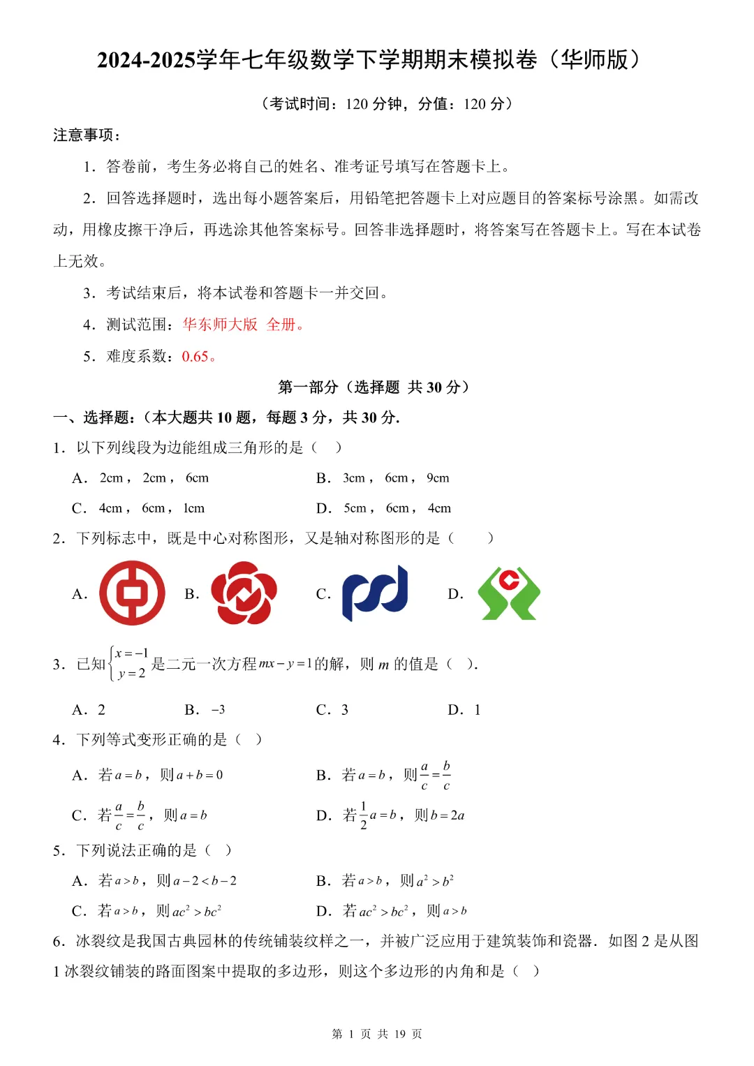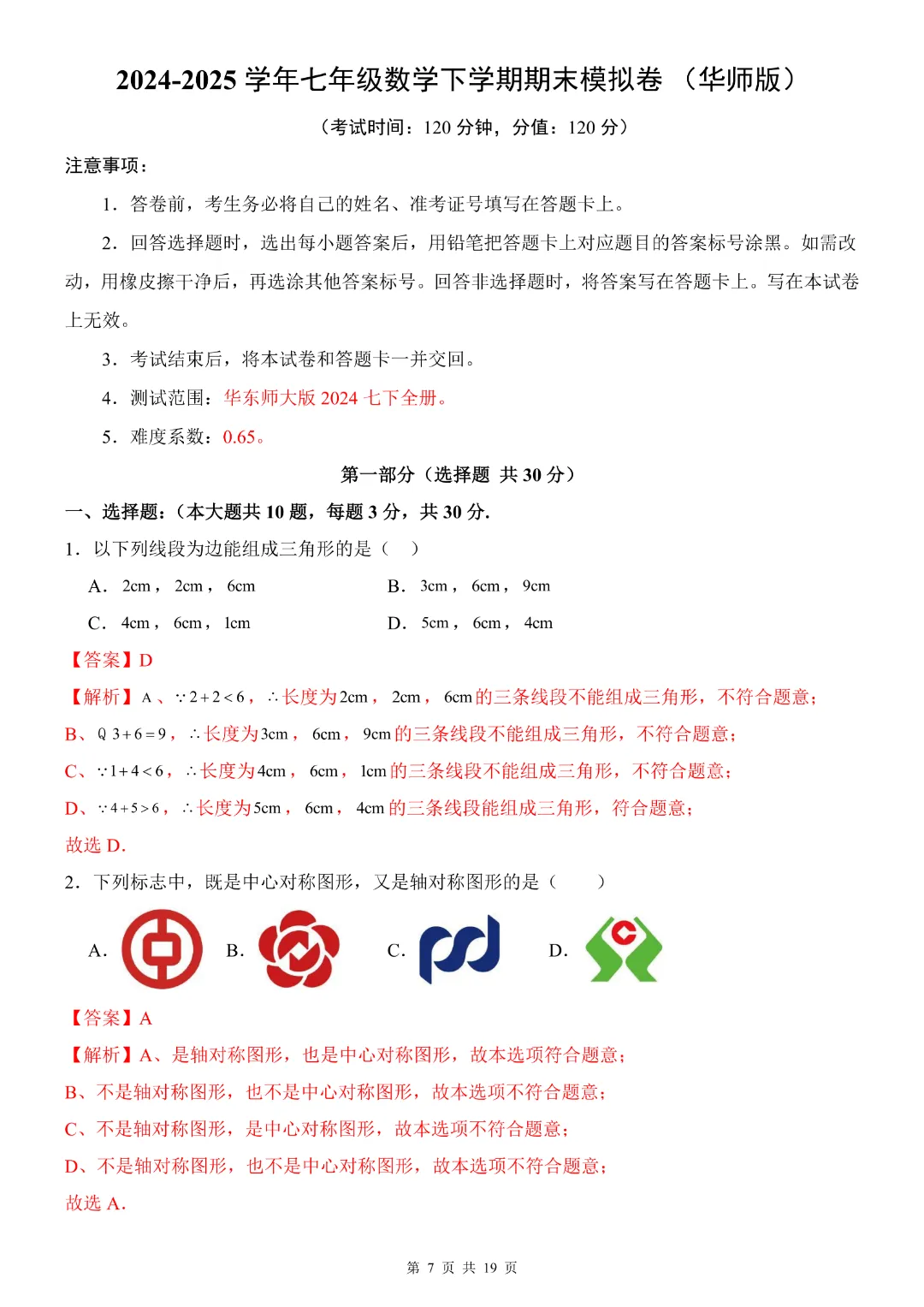 七年级下册数学【华东师大版】期末模拟卷带答案丨完整电子版可打印