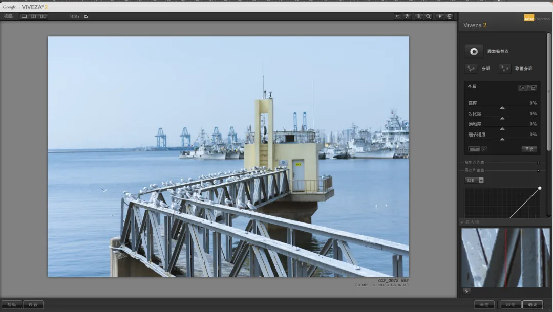 由名字我们就可以得知Viveza(选择性调节滤镜)是一款可以选择性调节画面的插件,也可以称之为局部调整工具。它在界面上和PS中的曲线工具、亮度调整工具有些类似,两者的区别在于它更加智能化、自动化。我们无需手动将想要调整的局部用套索工具画出,它可以根据我们所选择的局部画面,智能作用于相似画面,然后进行局部处理。