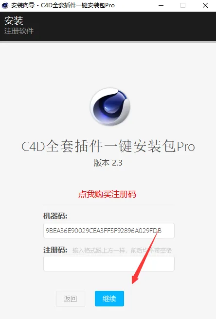 4、无需填写注册码,直接点击“继续”,耐心等待安装完毕。