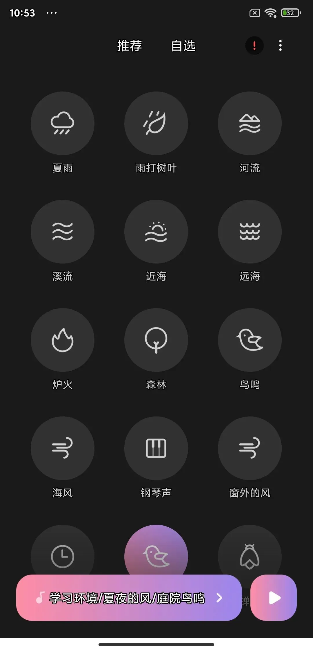 目前只有“夏雨、森林、炉火、海洋和夏夜”这五个音效,说实话有点少了。