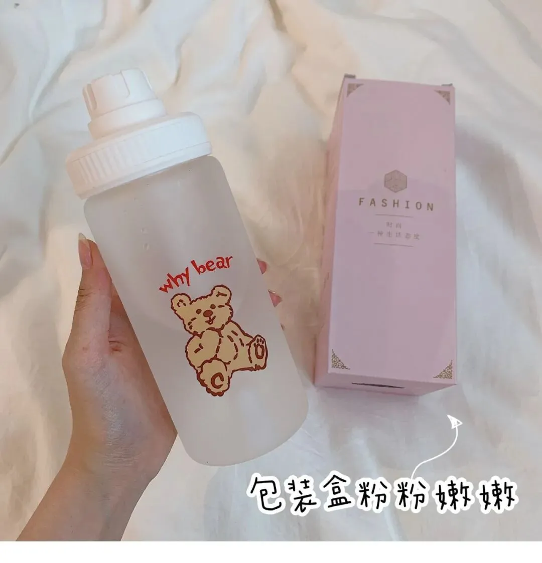 超可爱的熊熊水杯,是今年流行的why bear系列。磨砂半透明的玻璃杯,手感敲苏胡,非常实在的品质感哦。背面有容量刻度简直不要太棒~是夏天的感觉呢!